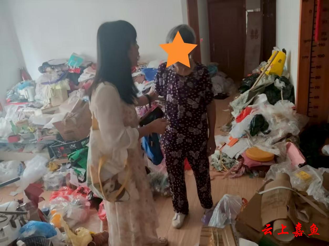 推开独居老人汪奶奶家的门,眼前的景象令人揪心,各类垃圾从屋内一直堆到门口,刺鼻气味扑面而来,物品杂乱堆放,居住环境极为恶劣。经了解,汪奶奶年事已高且子女远在外地,因身体不便,垃圾长期未能清理,不仅影响自身生活,还对周边邻里造成了困扰。