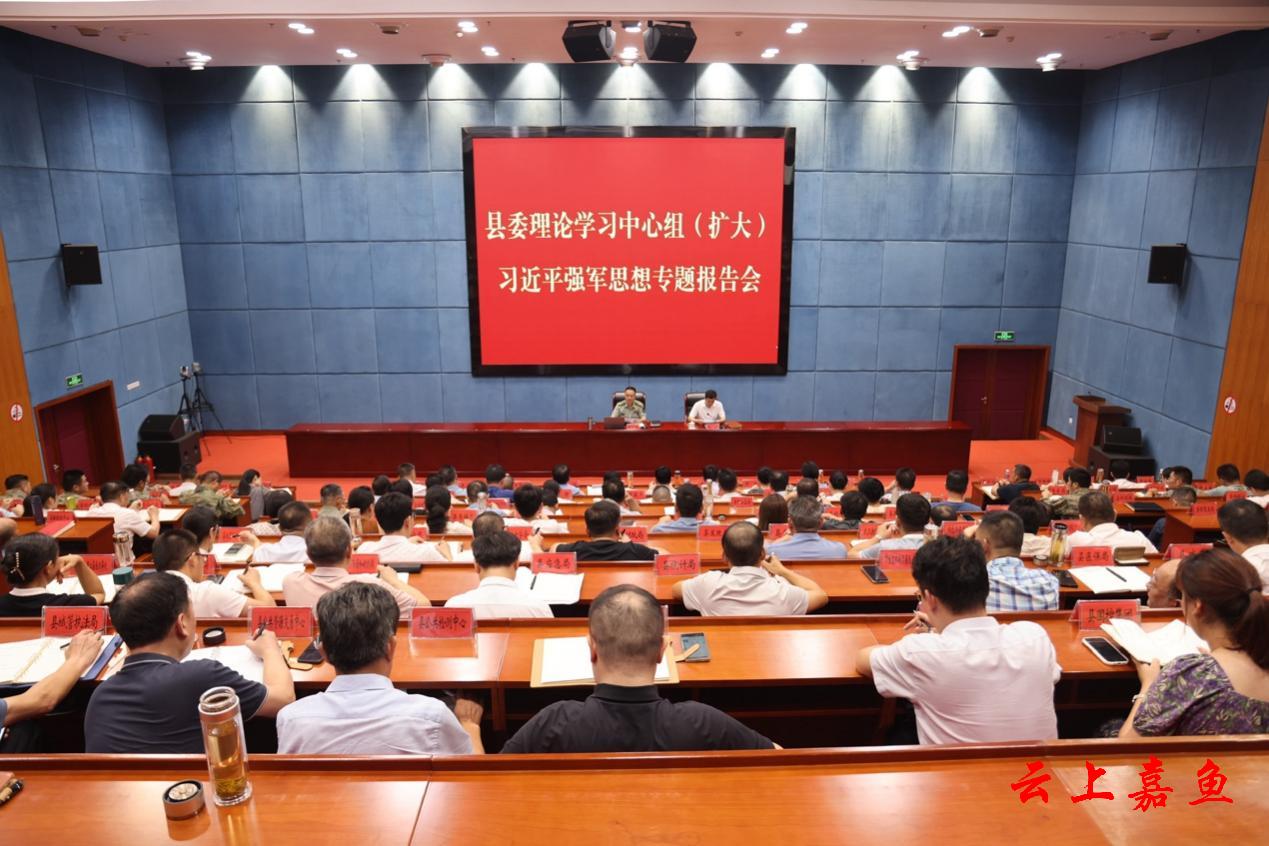 云上嘉鱼报道(全媒体记者夏洋)9月16日,县委理论学习中心组(扩大)习近平强军思想专题报告会召开。咸宁军分区大校政治委员朱明瑞出席并作专题辅导。县委书记王永主持会议。