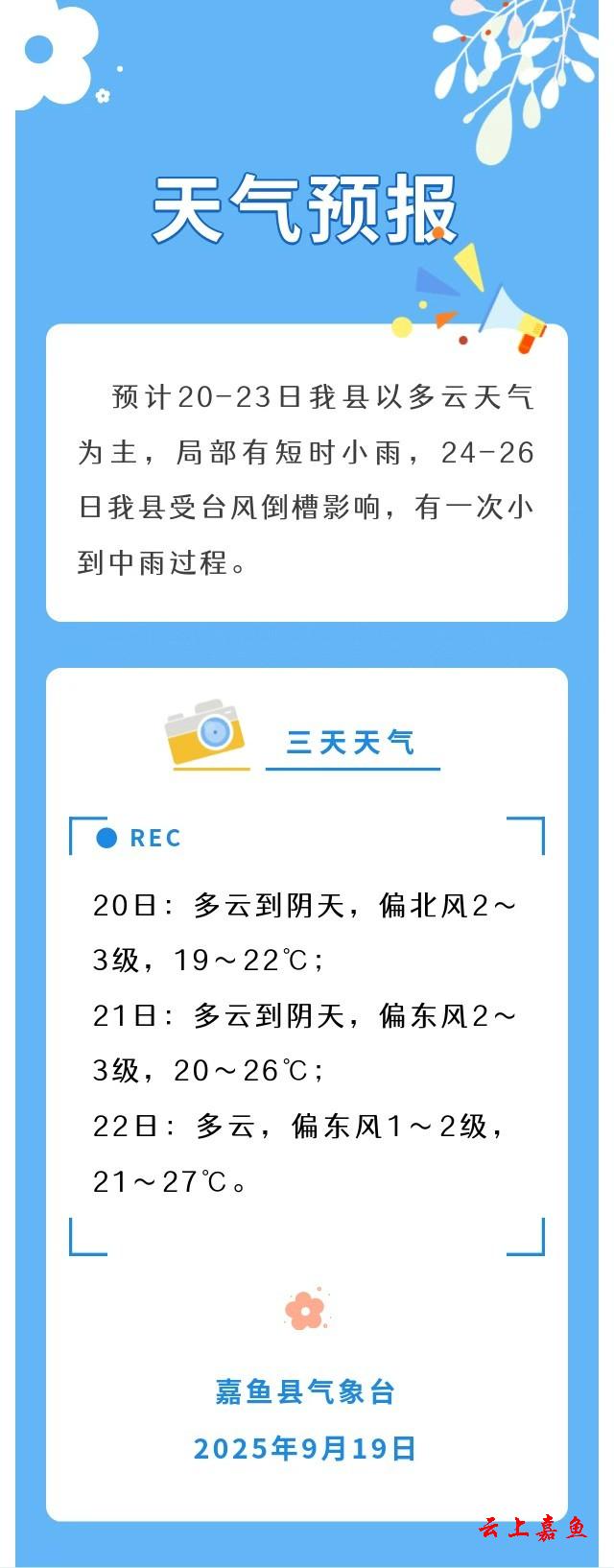 2025年9月19日嘉鱼天气预报