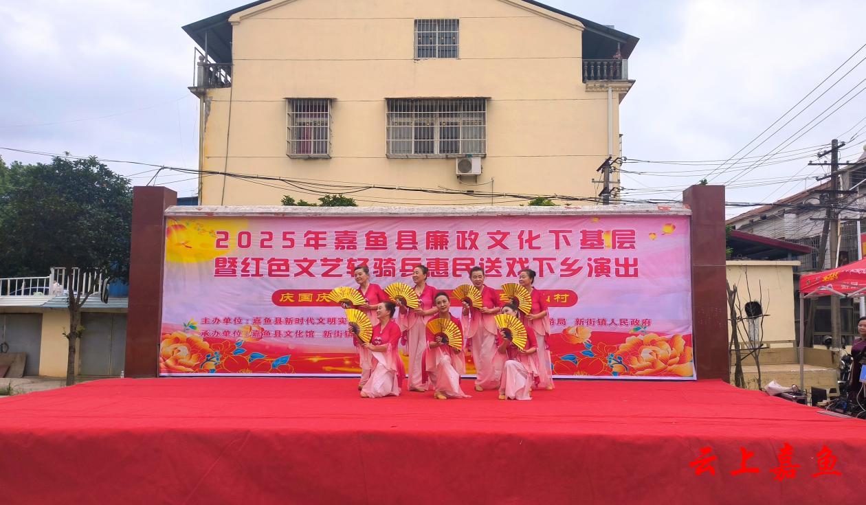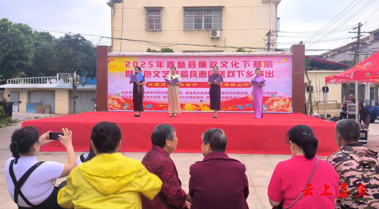 云上嘉鱼报道(全媒体记者黄士翔)9月19日,由县新时代文明实践中心、县纪委监委、县文化和旅游局及新街镇人民政府联合主办,县文化馆、新街镇新时代文明实践所、新街镇文化服务中心共同承办的“廉政文化下基层暨红色文艺轻骑兵送戏惠民下乡演出”在新街镇马鞍山村精彩上演,不仅为村民们带来了欢声笑语,更以文艺为载体传递廉政理念,让基层群众在潜移默化中接受精神洗礼。