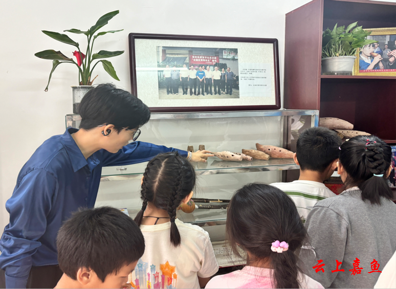 传承人还现场演奏了《楚歌》《渔舟唱晚》等经典曲目。悠远苍凉的乐音回荡,孩子们凝神静听,目光专注,不时为精彩的演奏报以阵阵赞叹,沉浸式体验了“泥土会唱歌”的非遗魅力。