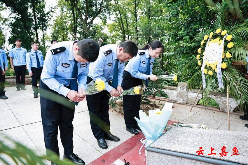 云上嘉鱼报道(全媒体记者胡知微)9月30日,嘉鱼县公安局组织民辅警来到县烈士陵园开展纪念烈士何军活动,缅怀公安英烈,弘扬烈士精神。县委常委、政法委书记范威,副县长、县公安局局长石亚平参加活动。