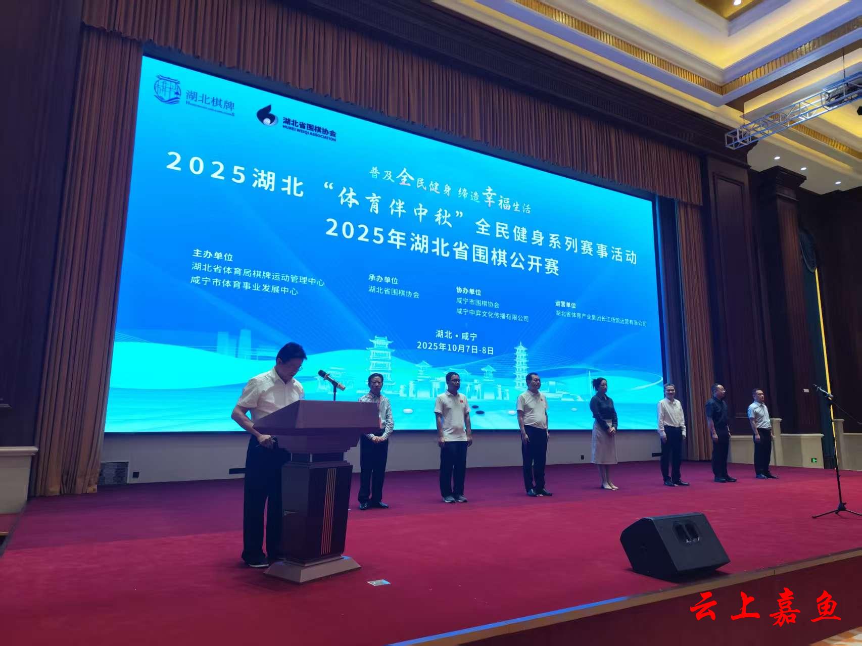 云上嘉鱼报道(全媒体记者郭辉 通讯员刘菊 周雄)10月7日,2025年湖北省业余围棋公开赛暨咸宁市职工围棋公开赛在嘉鱼开赛。湖北省体育局棋牌运动管理中心主任曹洁,咸宁市总工会党组书记、常务副主席程朝阳,咸宁市文化和旅游局局长、咸宁市体育事业发展中心主任李振,嘉鱼县委副书记陈瞻出席大赛开幕式。