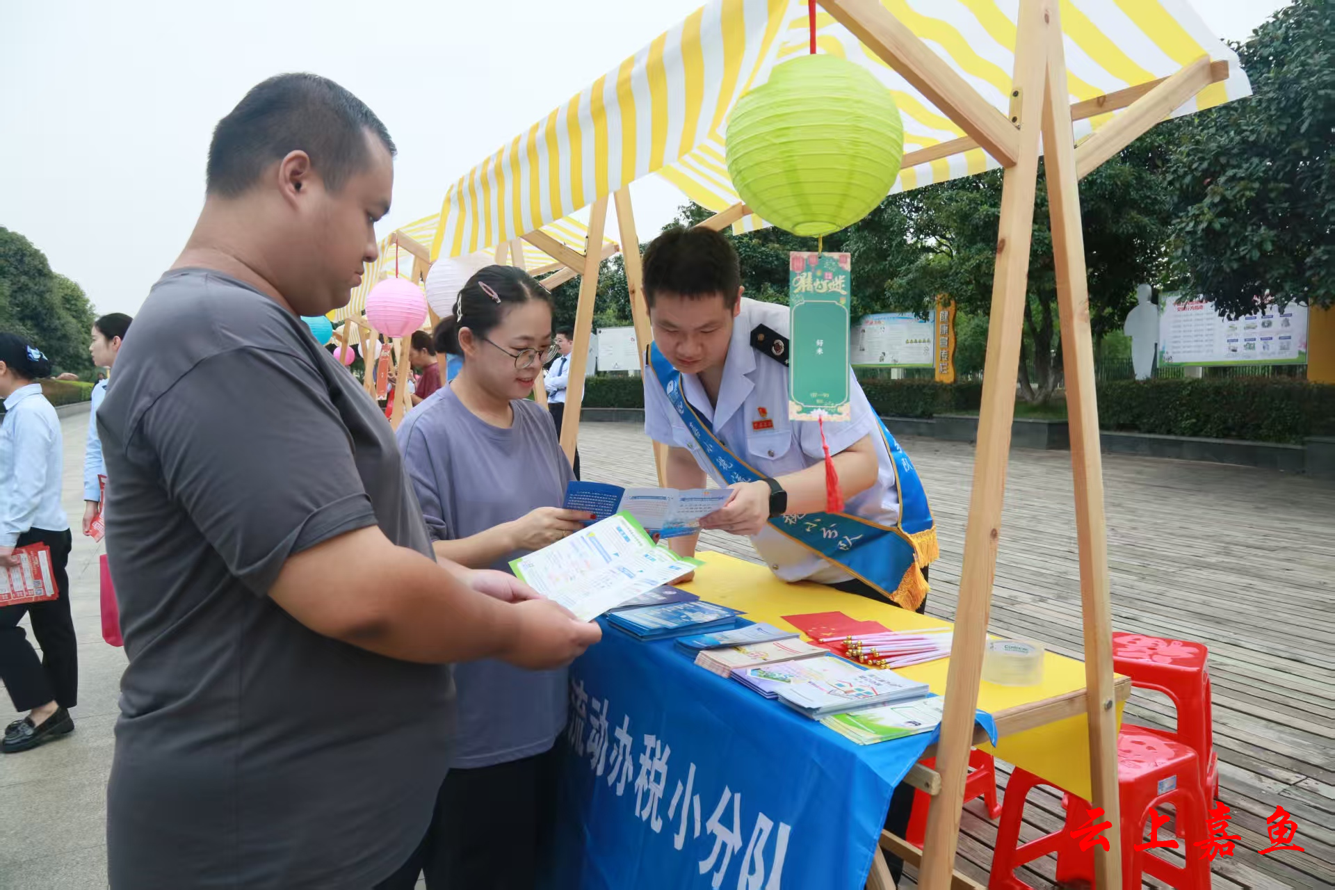 云上嘉鱼报道(通讯员陈甜)国庆假期中,嘉鱼县税务局携“嘉小税”纳税服务品牌走进鱼岳镇樱花社区“国庆中秋双节集市”文艺汇演现场,将税惠政策宣讲与节日文化盛宴深度融合,为个体工商户送上政策礼包,为居民带来别样的节日体验。