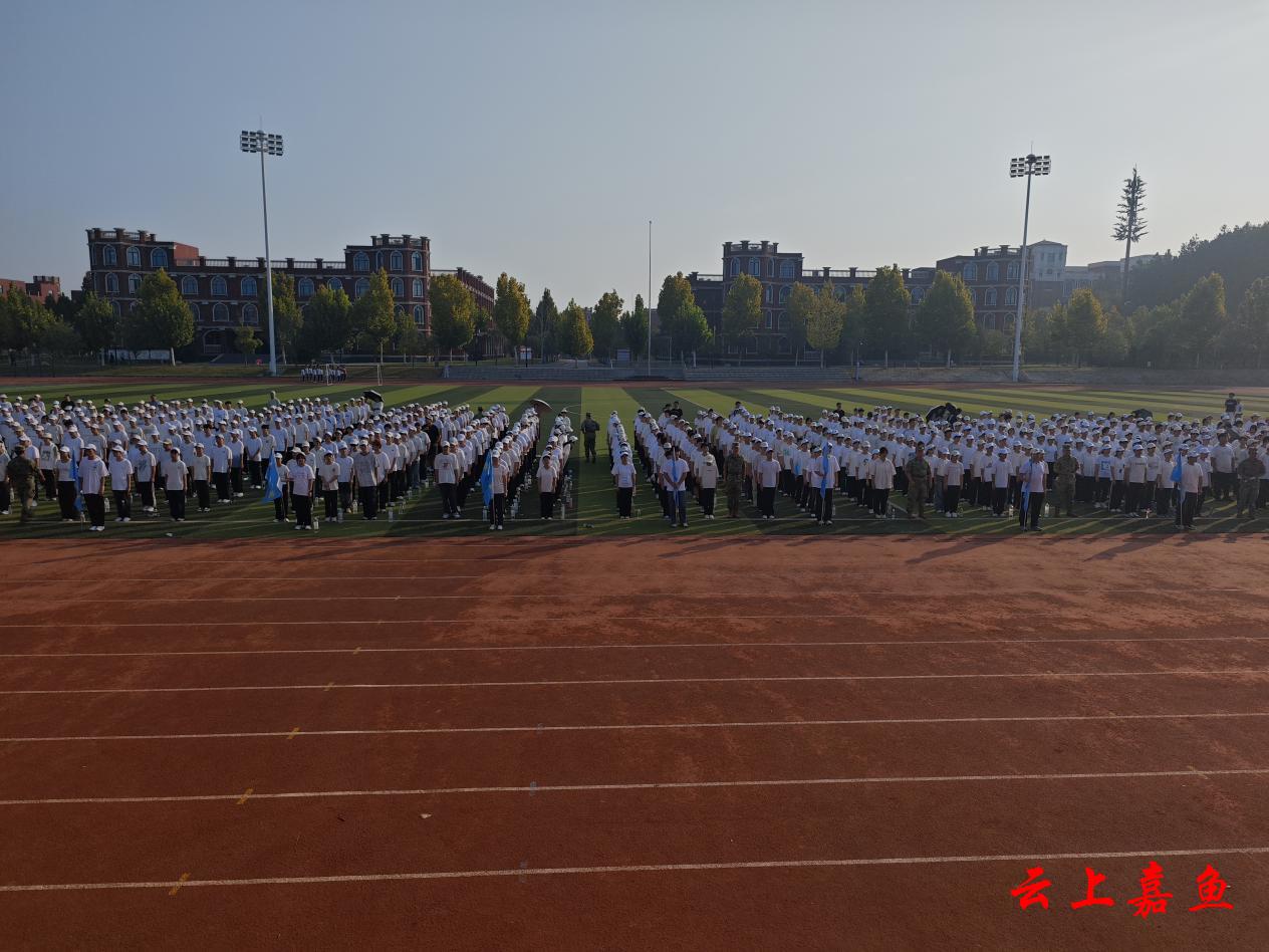 云上嘉鱼报道(全媒体记者陈铮)10月9日,嘉鱼县第二中学举行2025年秋季高一新生军训开营仪式,县人武部、县教育局相关负责人,军训教官、该校高一班主任老师和近千名高一新生参加活动。