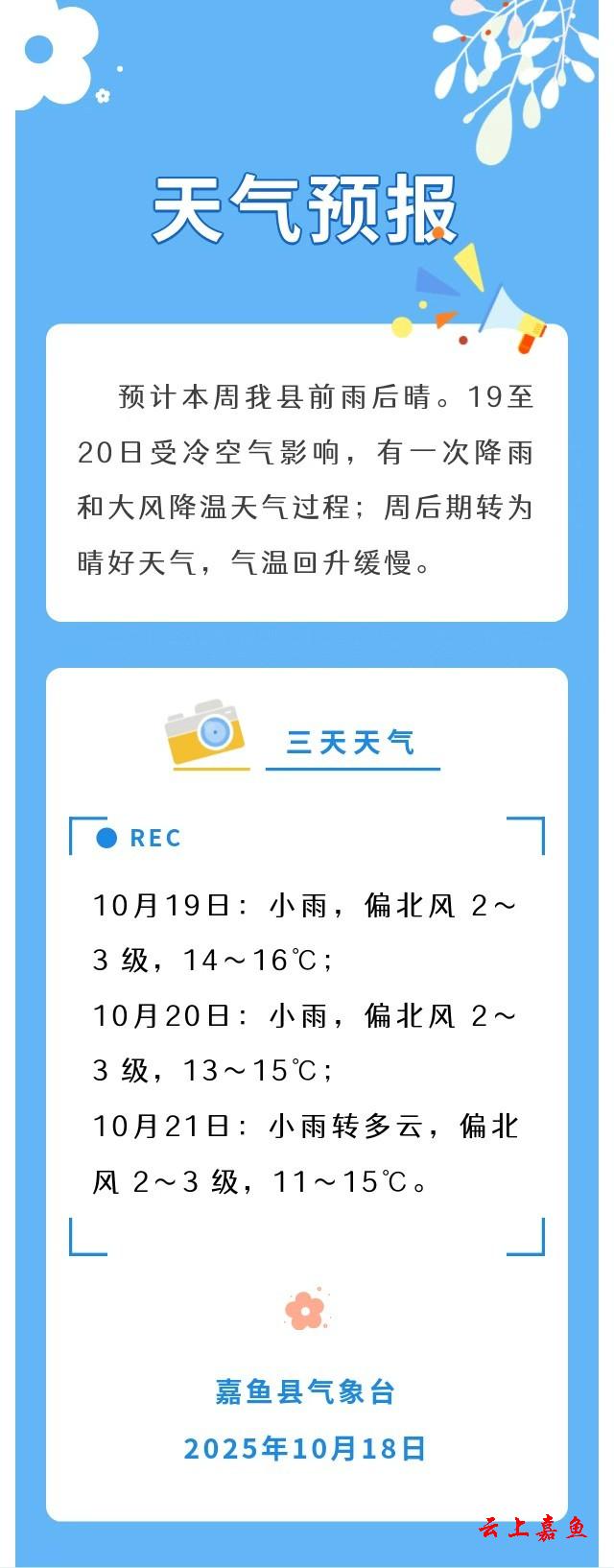 2025年10月18日嘉鱼天气预报