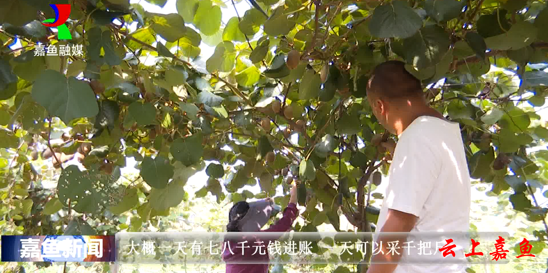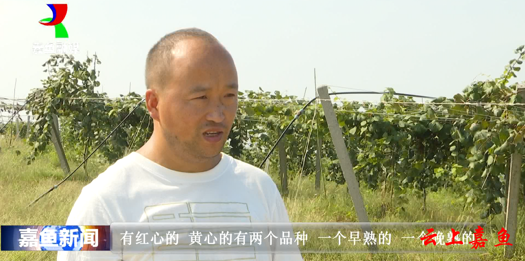 返乡青年蔡继波:当时从四川那边引种过来的,一共三个品种,有红心的、黄心的有两个品种,一个早熟、一个晚熟的,两个品种,一个是黄金果,一个是阳光金果。