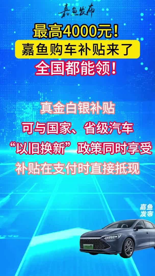 【微视】最高4000元!嘉鱼购车补贴来了,全国都能领!