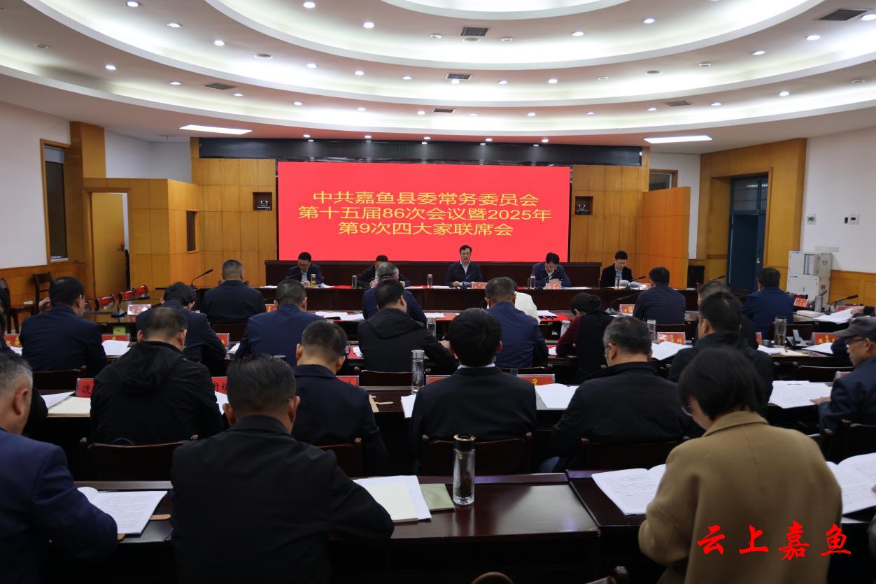 云上嘉鱼报道(全媒体记者夏洋 通讯员任鸿波)10月27日,中共嘉鱼县委常务委员会第十五届86次会议暨2025年第9次四大家联席会召开。县委书记王永,县委副书记、县长胡金云,县领导陈瞻、李德炳、余忠东、王卿、范威、费海喜、王玉坤、张伟、周湘波、杨忠雷出席会议。