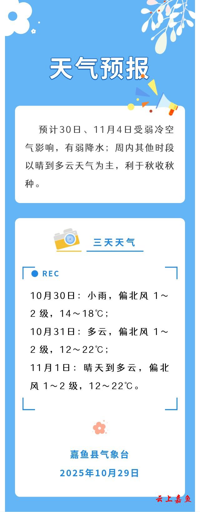 2025年10月29日嘉鱼天气预报