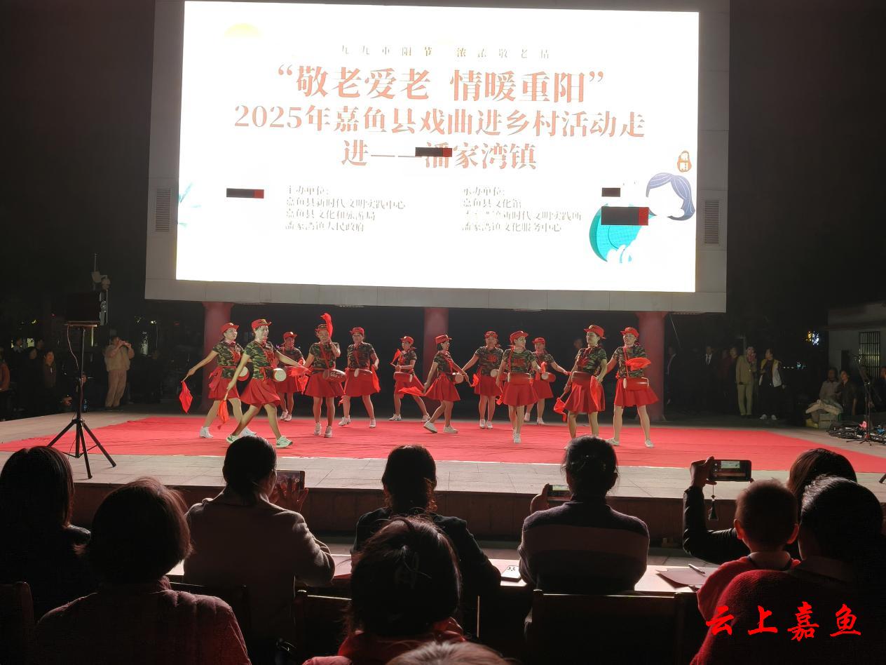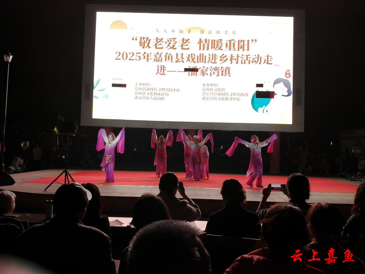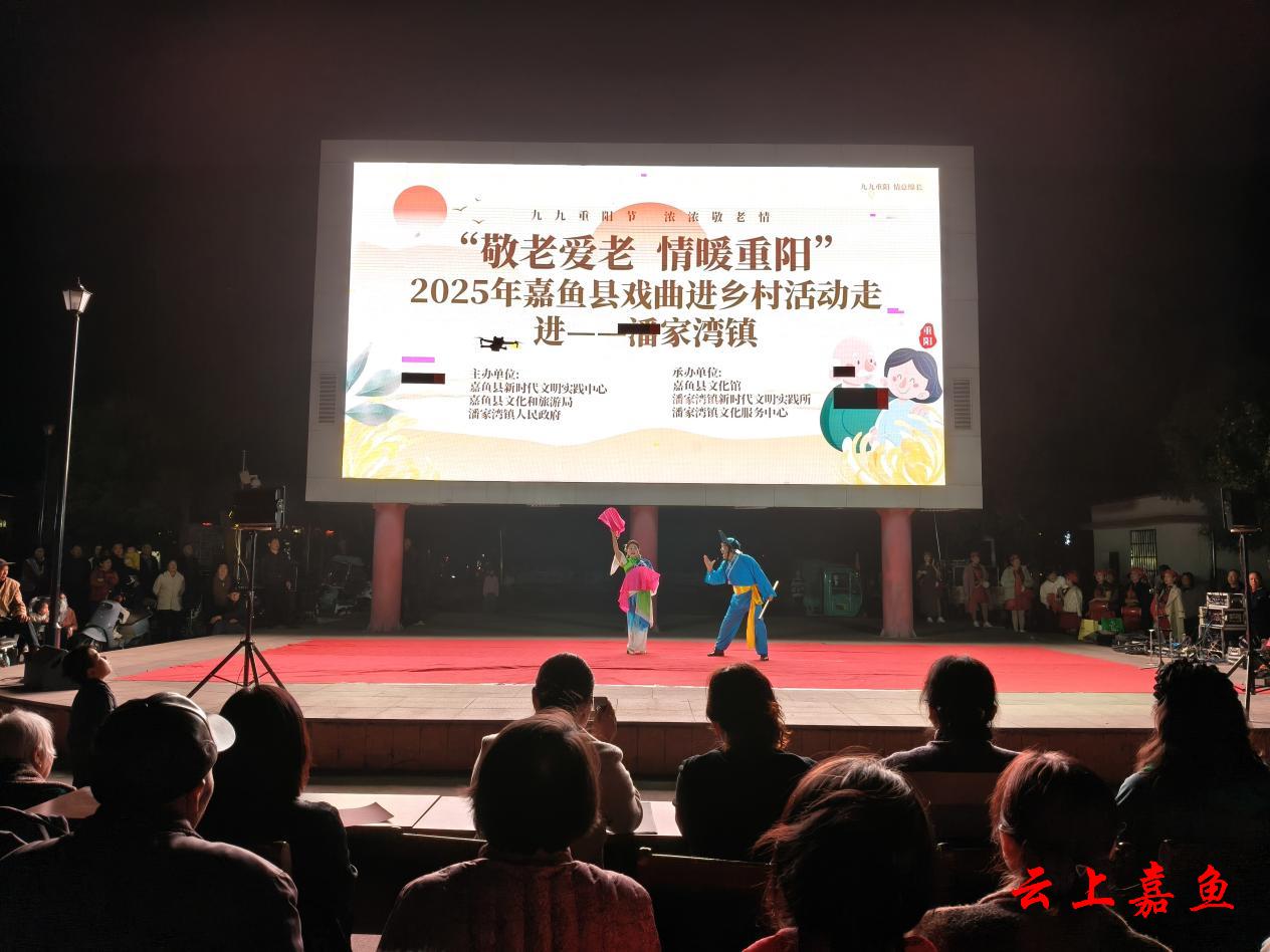 云上嘉鱼报道(全媒体记者胡知微)岁岁重阳,今又重阳。10月28日晚,潘家湾镇文化广场华灯璀璨,人流如织。由嘉鱼县新时代文明实践中心、嘉鱼县文化和旅游局、潘家湾镇人民政府联合举办的2025年嘉鱼县戏曲进乡村演出活动精彩上演,悠扬的乐曲、精美的服饰和独特的戏曲唱腔,吸引数百名社区群众前来观看。