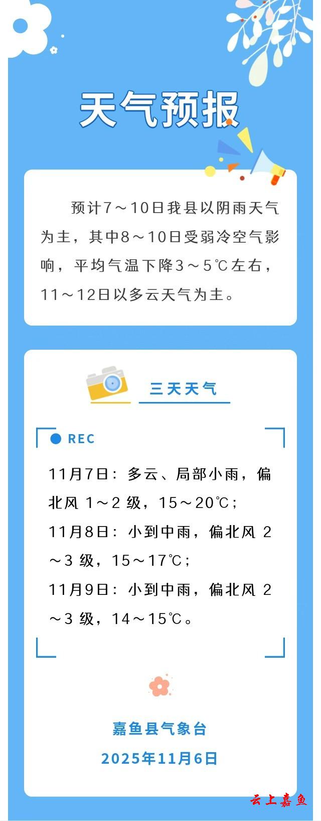 2025年11月6日嘉鱼天气预报