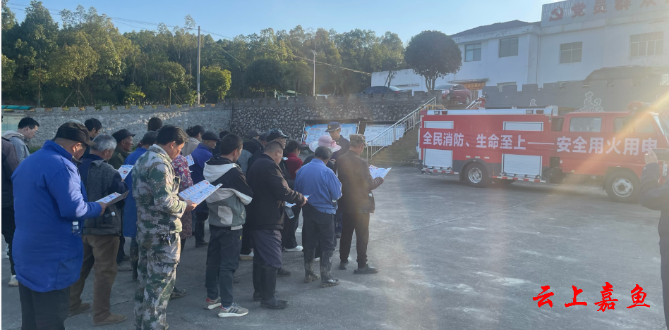 云上嘉鱼报道(通讯员毛关梁)11月19日下午,高铁岭镇平安建设办联合九龙村村民委员会开展了“119”消防宣传月消防演练活动。