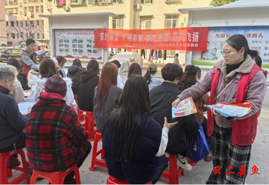 云上嘉鱼报道(通讯员周露黎)为弘扬勤俭节约传统美德,倡导文明健康、绿色环保生活方式,近日,县发改局联合鱼岳镇小湖社区新时代文明实践站,开展“节约粮食 文明餐桌”移风易俗宣传活动,引导居民践行文明新风。