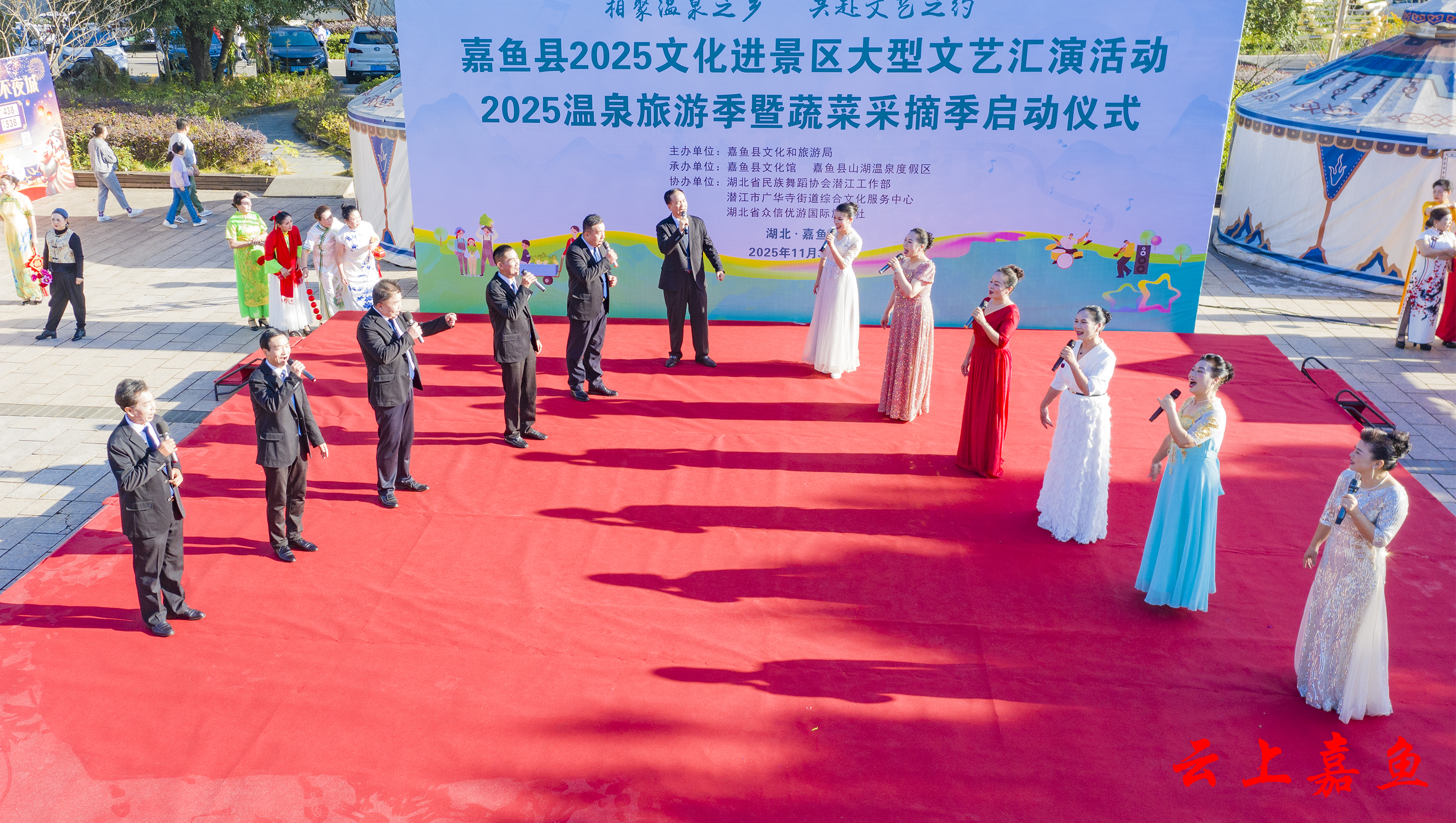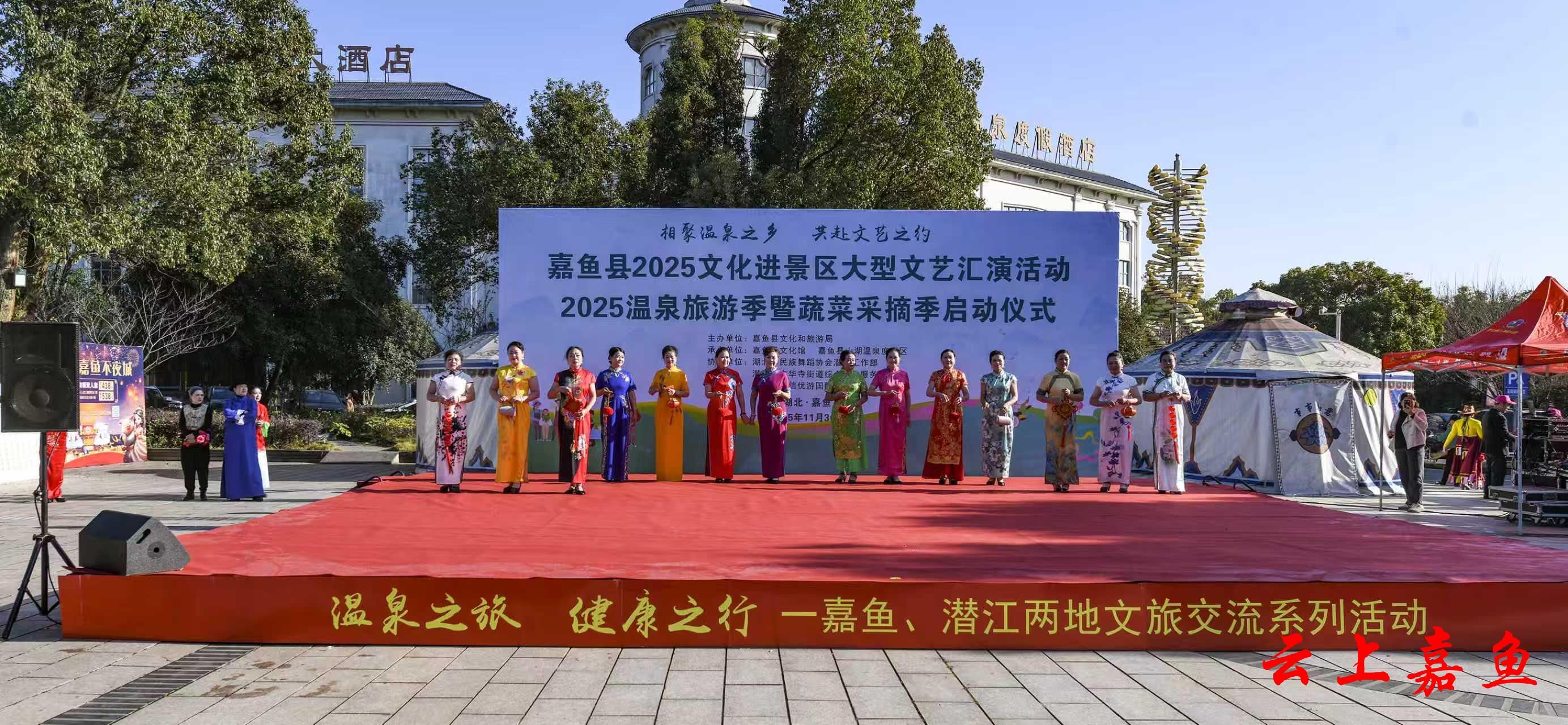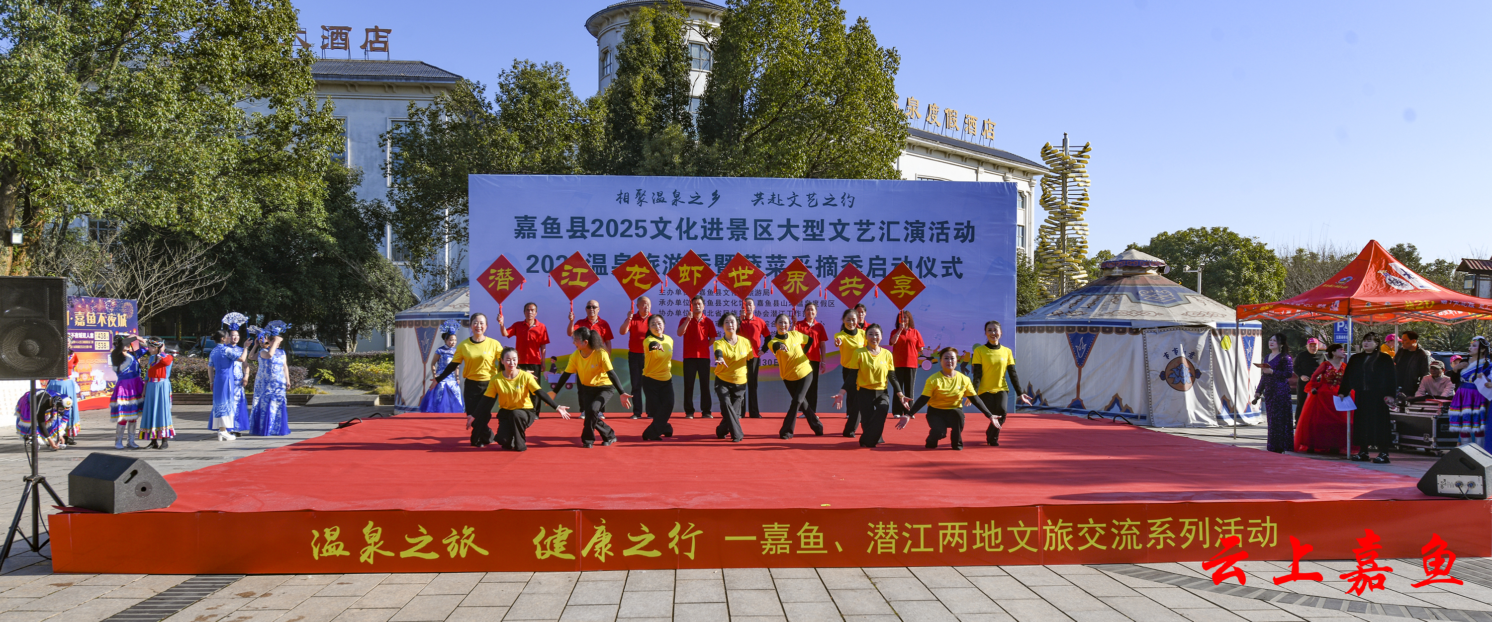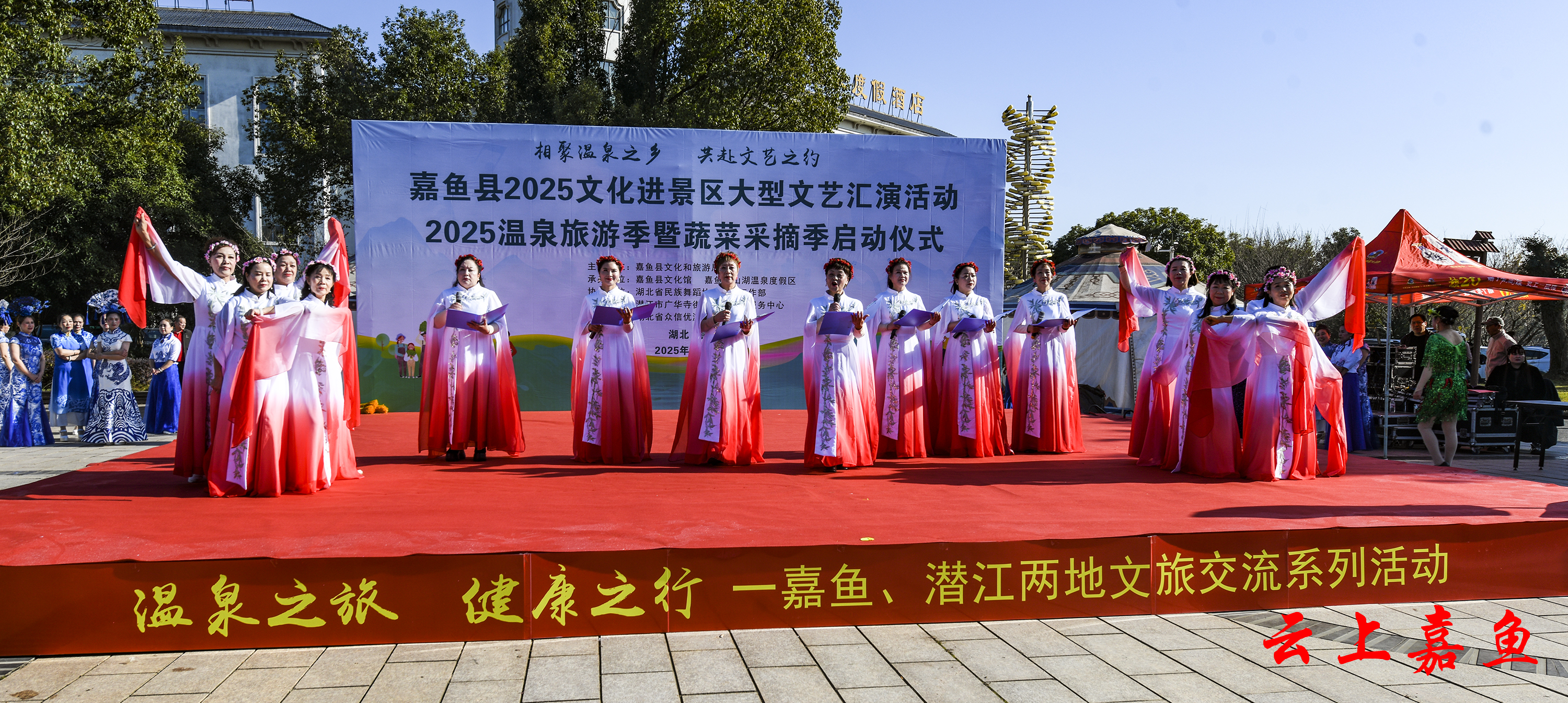 云上嘉鱼报道(全媒体记者雷平 通讯员王杨)11月30日,嘉鱼县2025文化进景区文艺汇演、嘉鱼温泉旅游季暨蔬菜采摘季在山湖温泉启动,期间还举办了嘉鱼、潜江两地文旅交流系列活动。