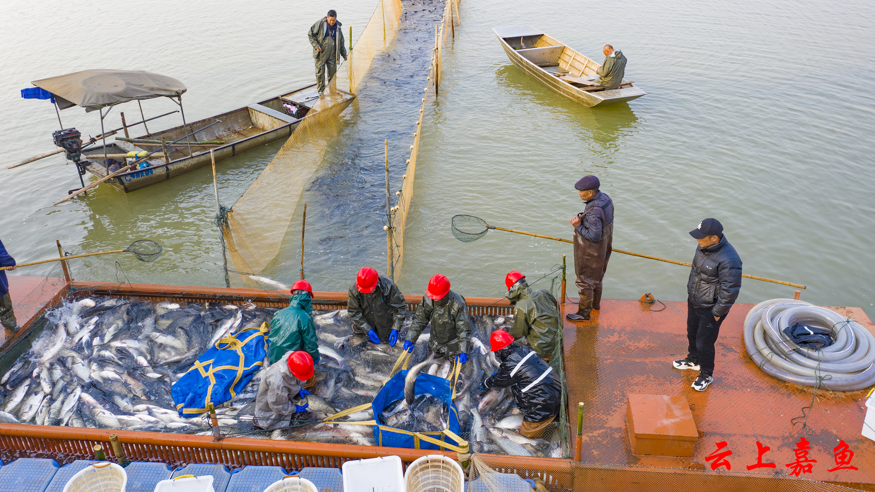 云上嘉鱼报道(全媒体记者雷平 通讯员王子卿)12月2日,嘉鱼县三湖连江梅懈湖热闹非凡,嘉鱼县南江水产有限责任公司正在进行赶网捕捞,起鱼、过磅、装车,一条条肥美的草鱼、白鲢等多种鲜鱼活蹦乱跳。