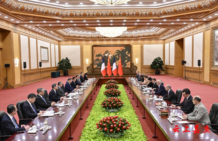 马克龙表示,法中保持密切高层交往,始终相互信任、相互尊重。法方重视对华关系,坚定奉行一个中国政策,愿持续深化法中全面战略伙伴关系。法方乐见中国经济蓬勃发展,坚持开放合作,为世界带来更多机遇,愿同中方促进相互投资,加强经贸、可再生能源等领域合作,促进友好文化交流。法方欢迎中国企业更多赴法投资,愿提供公平、非歧视营商环境。法方致力于推动欧中关系健康稳定发展,认为欧中应坚持对话合作,欧洲应实现战略自主。面对世界地缘形势不稳、多边秩序受到冲击,法中合作更显重要,不可或缺。法方完全赞同习近平主席有关改革完善全球治理、推动全球经济更加平衡的意见,愿同中方加强协调,共担大国责任、坚持多边主义,加强在应对气候变化、保护生物多样性、人工智能治理等领域合作,为促进世界和平与繁荣作出贡献。