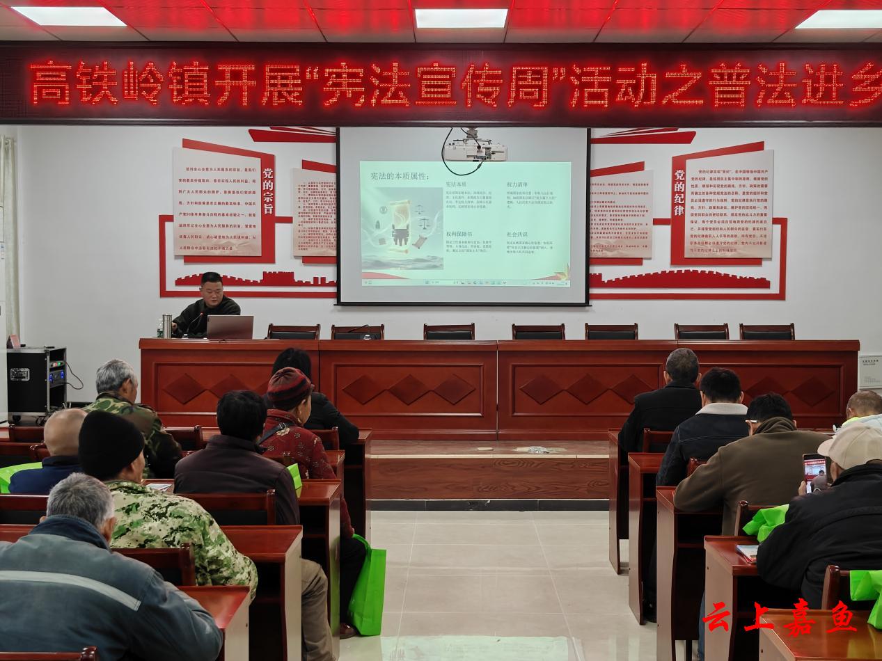 在高铁岭镇广济堂村的会议室里,高铁岭司法所负责人给大家带来了别开生面的宪法课堂,用大众化的语言、真实的案例,从宪法的历史、宪法的地位以及宪法与我们的生活等三个方面为切入点进行宣讲。现场氛围热烈,村民纷纷表示受益颇丰。