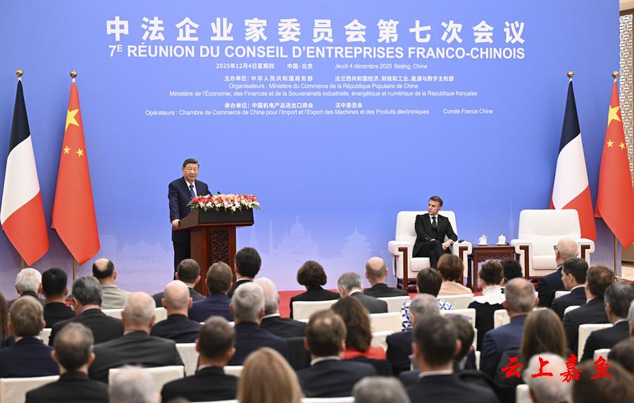 新华社北京12月4日电(记者董雪、冯歆然)12月4日中午,国家主席习近平在北京同法国总统马克龙共同出席中法企业家委员会第七次会议闭幕式并致辞。