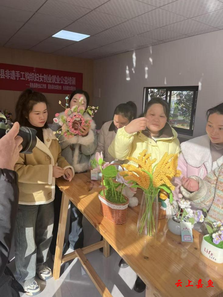 云上嘉鱼报道(全媒体记者汪妍 通讯员李安琪)12月14日,由嘉鱼县委社会工作部、嘉鱼县妇女联合会、鱼岳镇妇女联合会联合举办的“嘉鱼县第二期非遗手工钩织妇女创业就业公益培训”在金街商圈共享驿站开班授课。近20名来自城区及周边村落的宝妈、全职主妇、新就业群体等齐聚一堂,在钩针与彩线的翻飞间,开启非遗传承与创业增收的双重学习之旅。