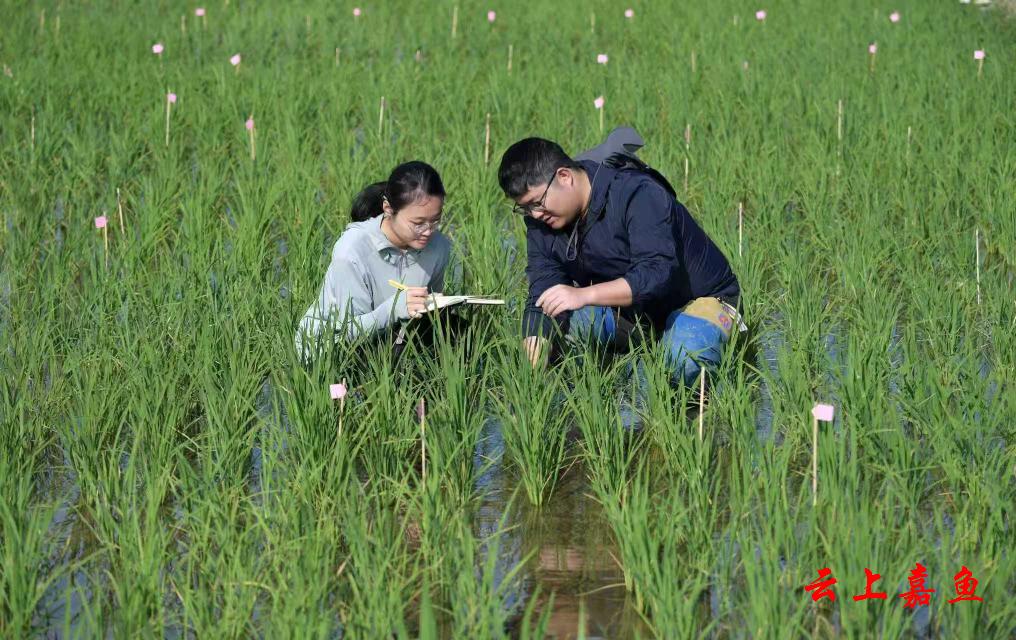 2月10日,在海南省三亚市崖州湾科技城国家耐盐碱水稻技术创新中心科研试验基地,科研人员在调查水稻农艺性状。新华社记者 赵颖全 摄