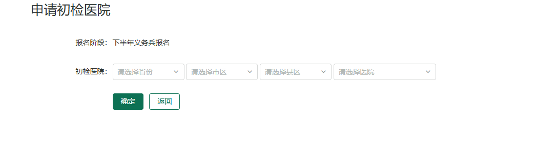 第六步:申请初检医院。义务兵报名信息填写完毕并成功提交后,请在当地乡镇武装部或高校征兵工作站工作人员的指导下,点击我的进度里的“初检初核”按钮,选择初检医院进行初检,这是参军环节的第一步。