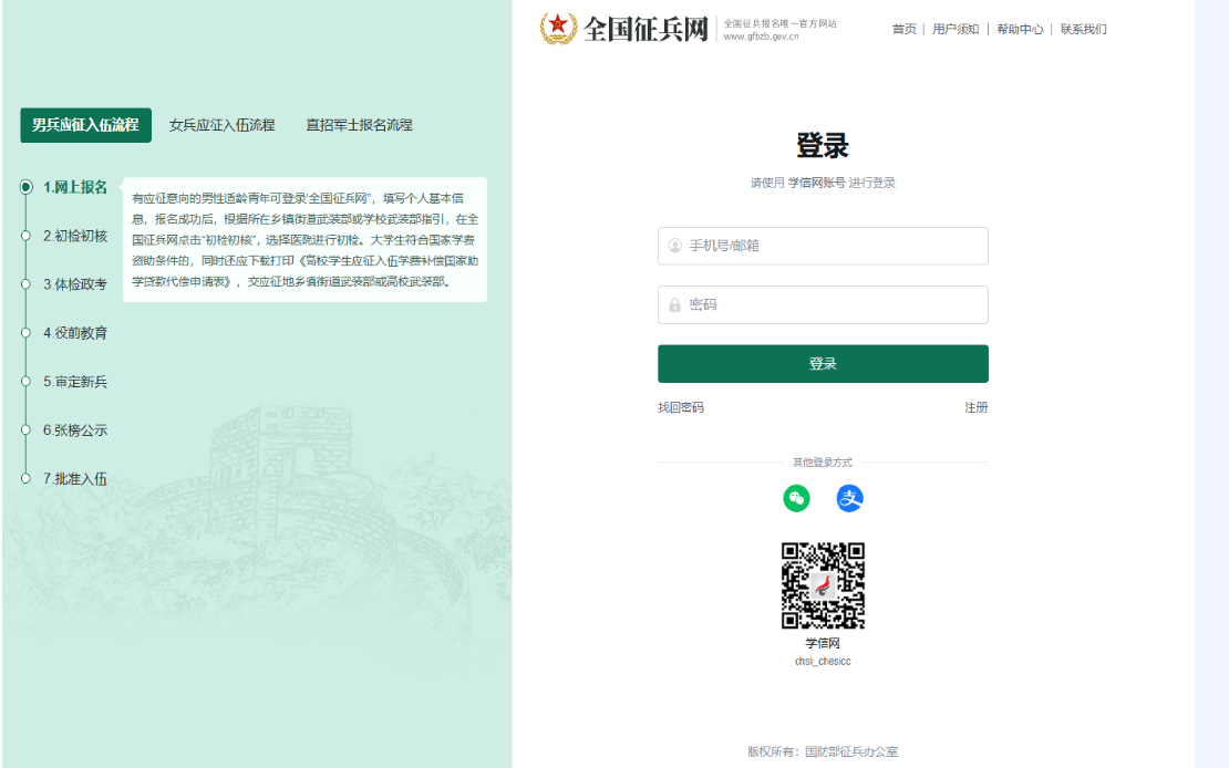 网上自主登记:登录“全国征兵网”(https://www.gfbzb.gov.cn)。