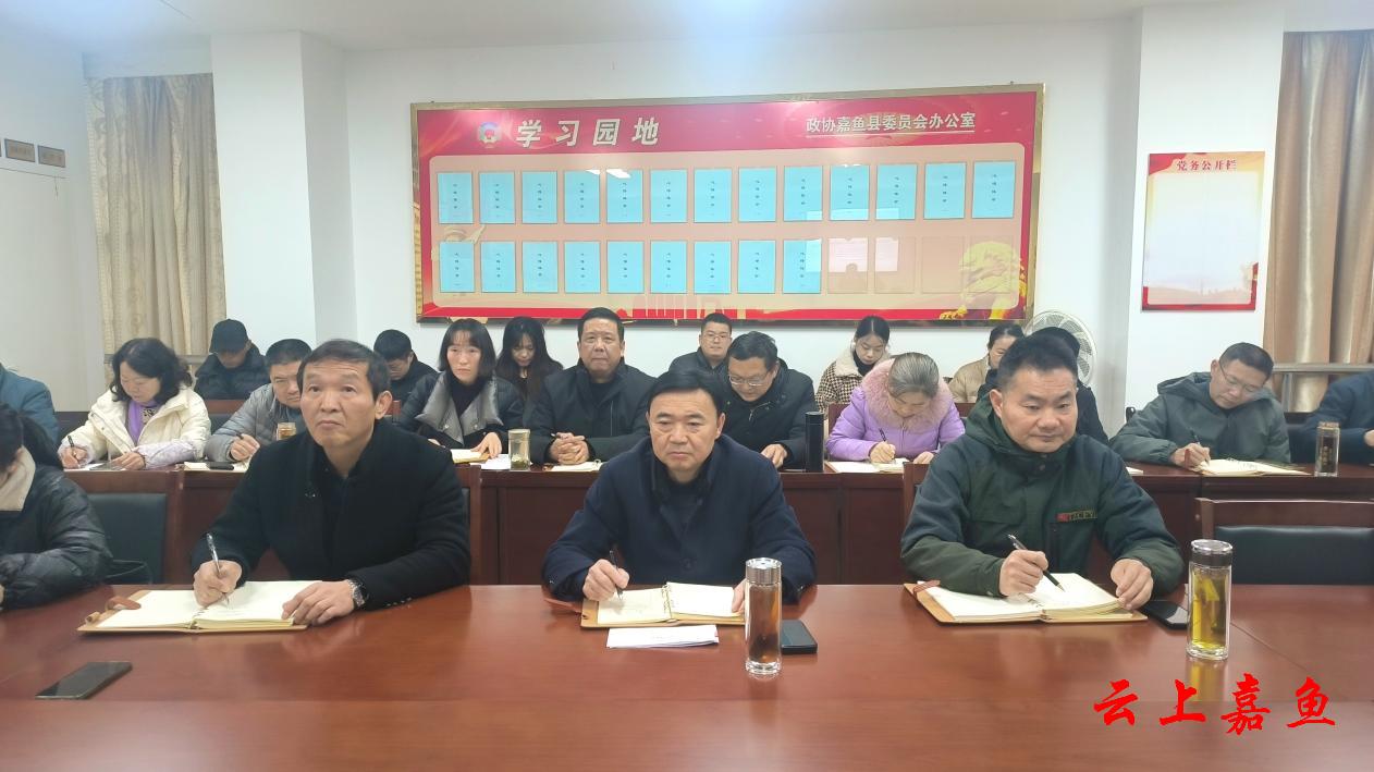 云上嘉鱼报道(全媒体记者黄士翔)12月24日,县政协召开学习贯彻党的二十届四中全会精神宣讲报告会。县政协党组书记、主席余忠东,县政协领导孙强、陈良成、陈静、房金文、夏禹出席会议,县政协机关全体党员干部参加会议。