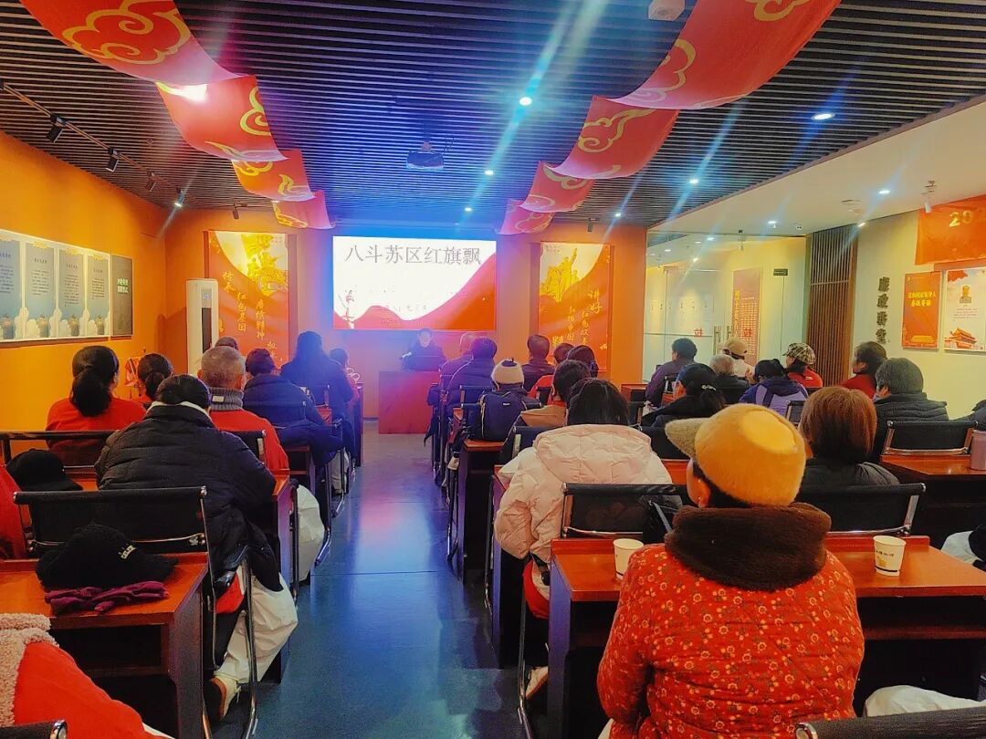 讲座现场,主讲老师以嘉鱼本地红色资源为切入点,重点讲述八斗苏区革命斗争史。通过生动再现革命先烈在这片红色热土上浴血奋战、舍生忘死的英勇事迹,老师将厚重的历史转化为鲜活可感的故事,引导观众在重温峥嵘岁月中感悟信仰的力量与理想的光芒。