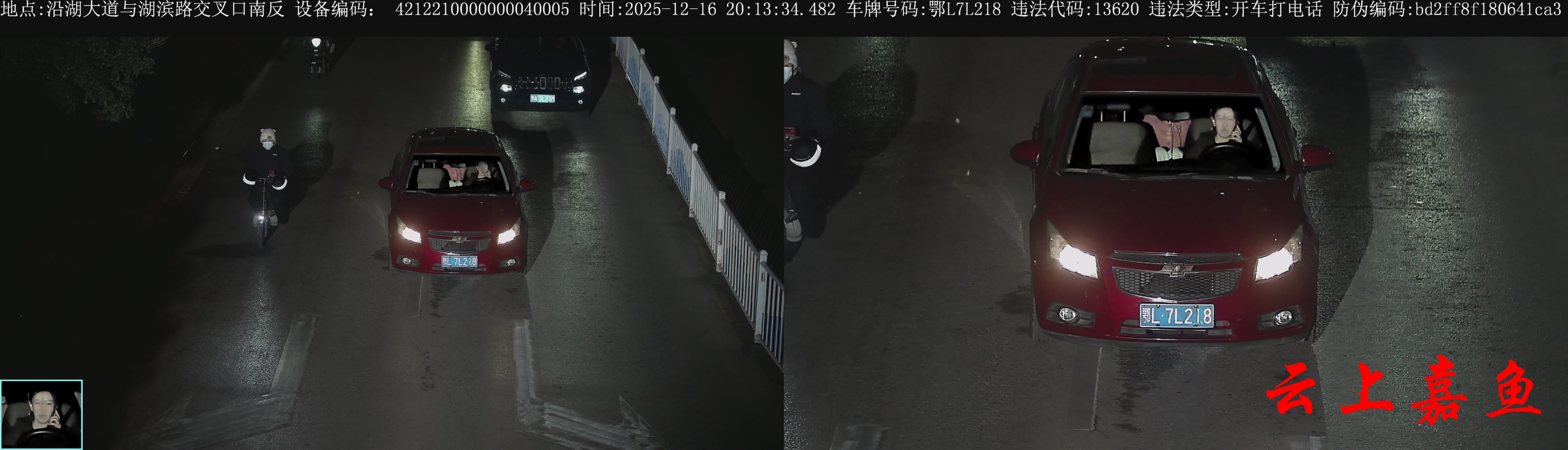 违法地点:沿湖大道与湖滨路交叉路口路段 违法行为:开车接打电话
