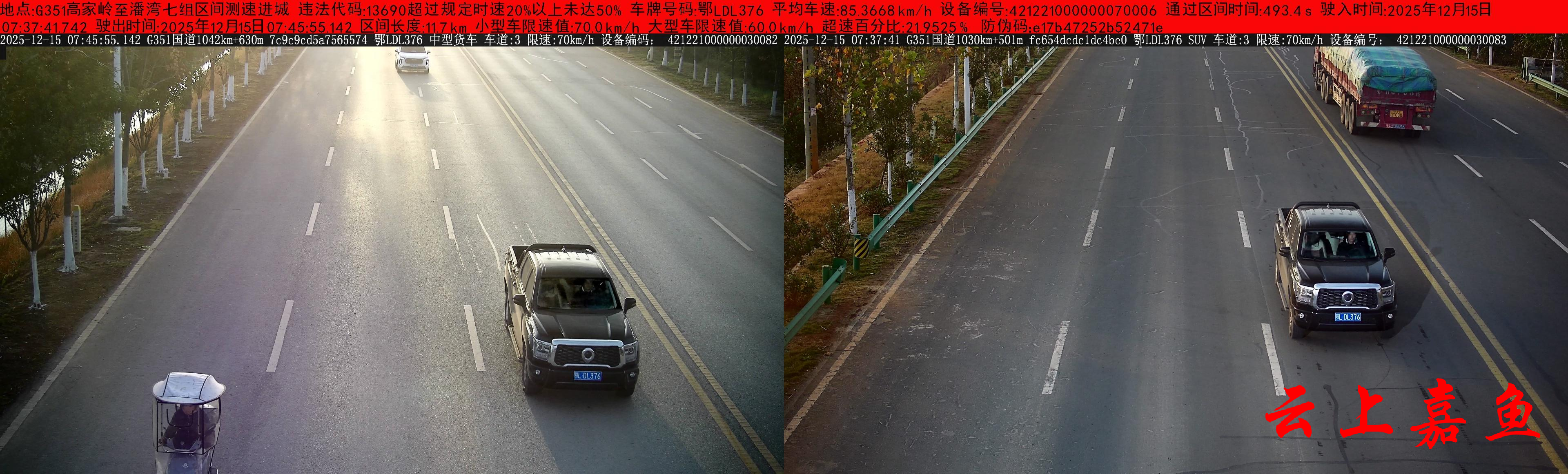 违法地点:G351高家岭至潘湾七组区间测速路段 违法车辆:鄂LDL376