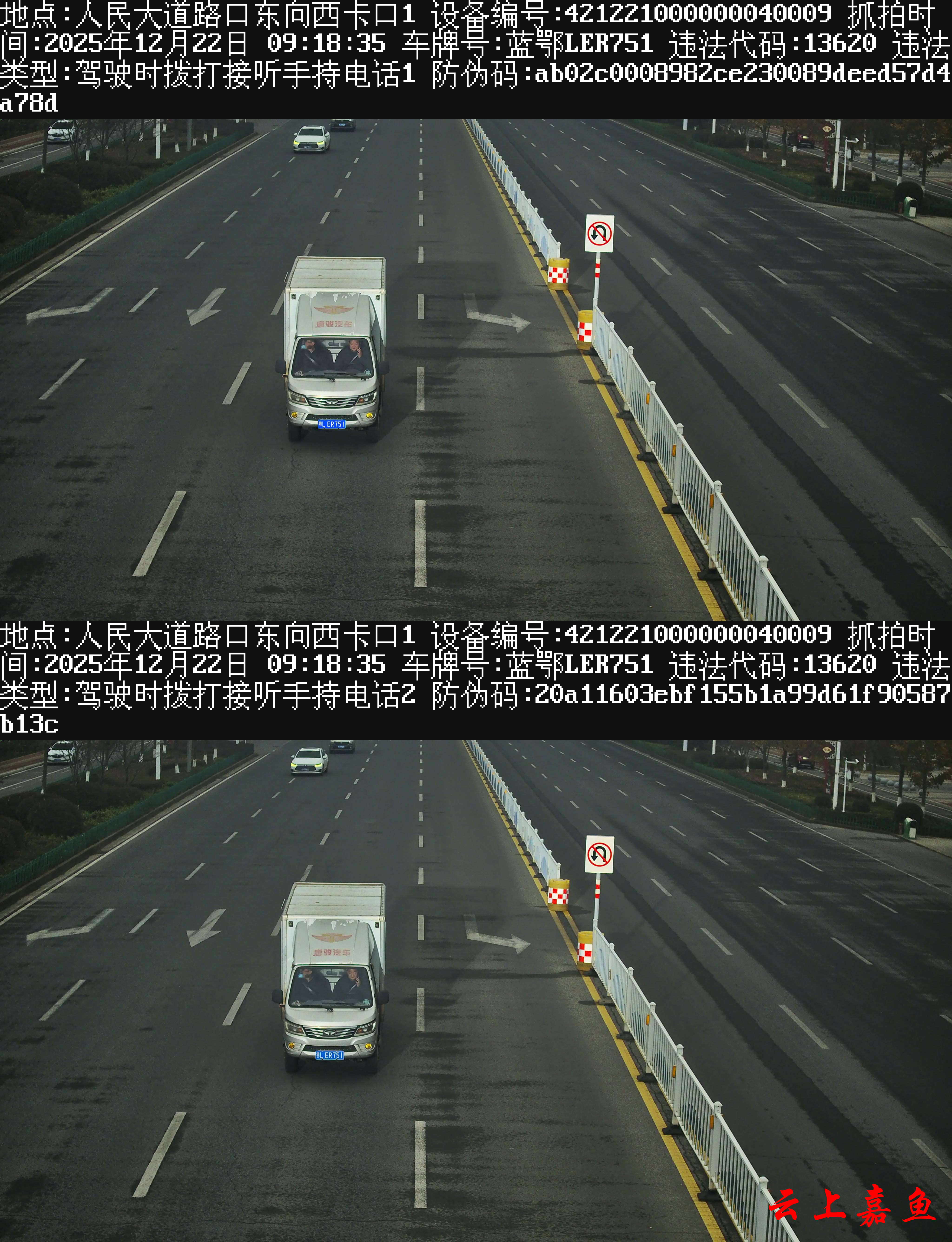 违法地点:人民大道路口东向西卡口 违法行为:开车接打电话