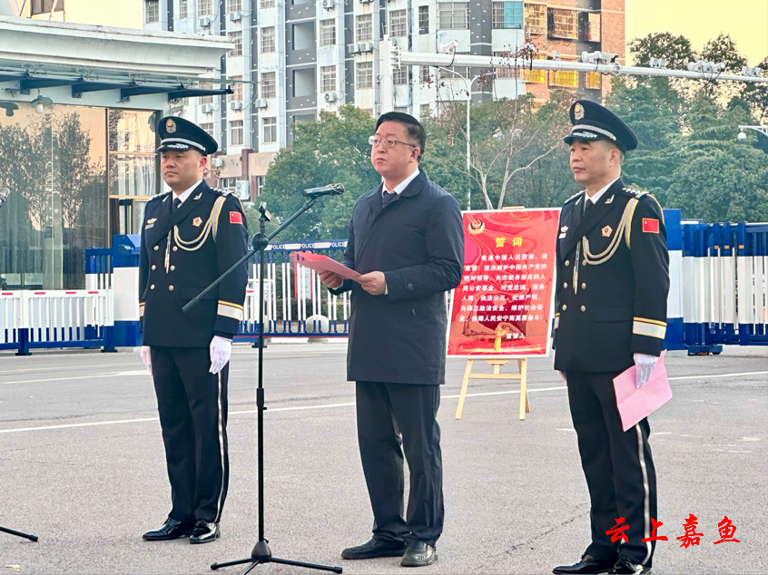 云上嘉鱼报道(全媒体记者祁声坤)1月10日,嘉鱼县公安局举行升警旗仪式,热烈庆祝第六个中国人民警察节。县委常委、政法委书记范威参加升旗仪式并看望慰问全体公安民辅警,副县长、县公安局局长石亚平主持仪式。
