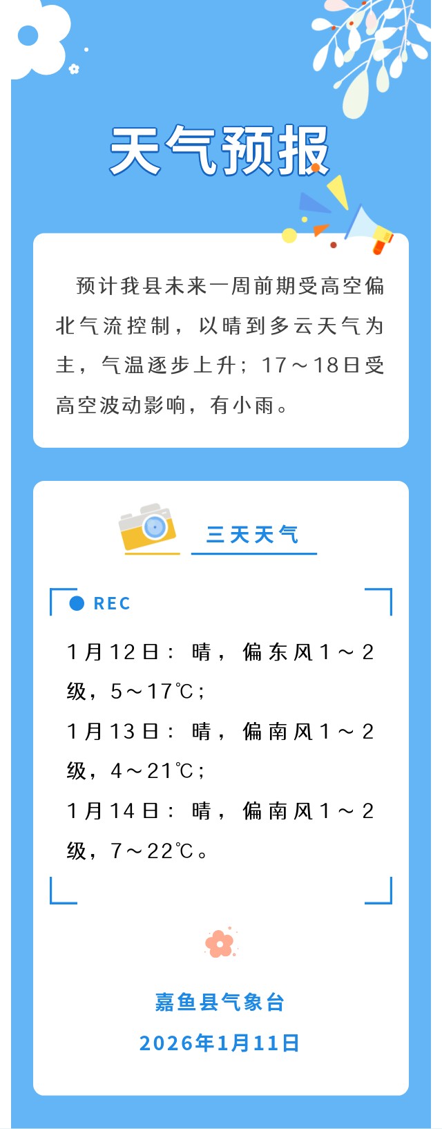 2026年1月11日嘉鱼天气预报