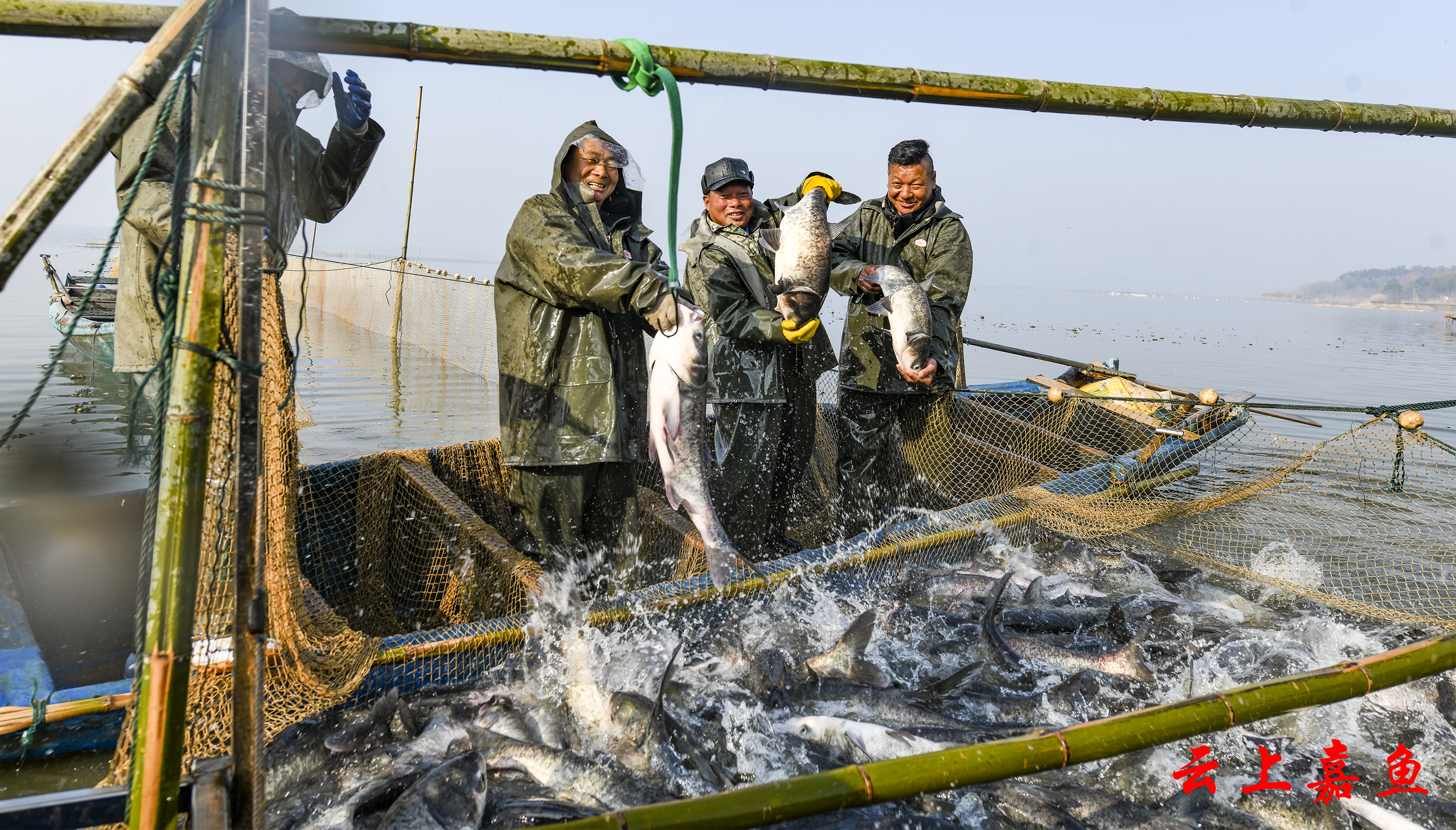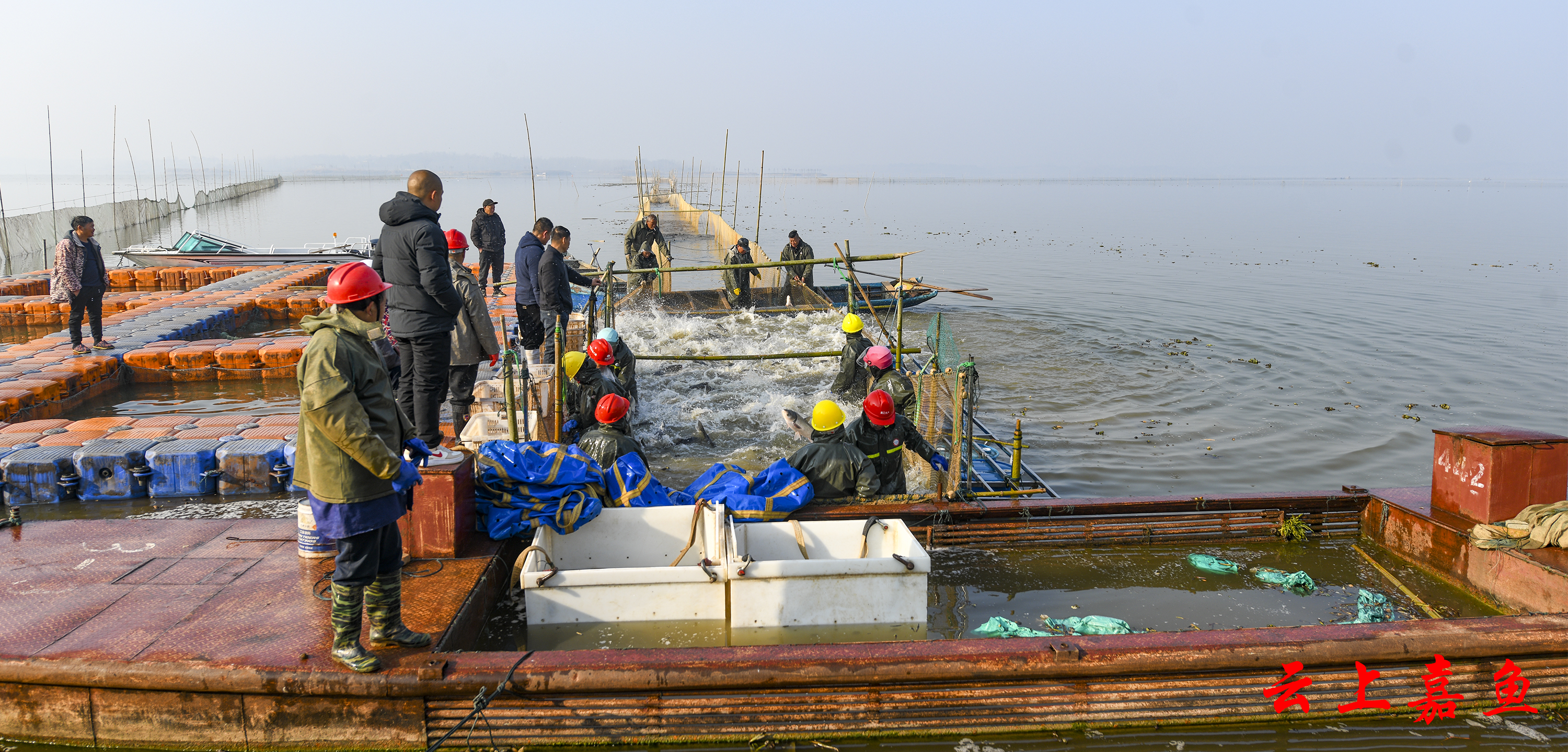 云上嘉鱼报道(全媒体记者雷平 通讯员王子卿)1月15日,嘉鱼蜜泉湖渔场开网捕捞起鱼,来自重庆、宜昌等地客商的车辆排起长龙。渔民们忙碌而有序地拉网、赶鱼、分拣、装框,翻腾的鲜鱼吸引了周边的野鸬鹚和白鹭欢歌翩跹,现场一派鱼跃人欢的丰收景象。