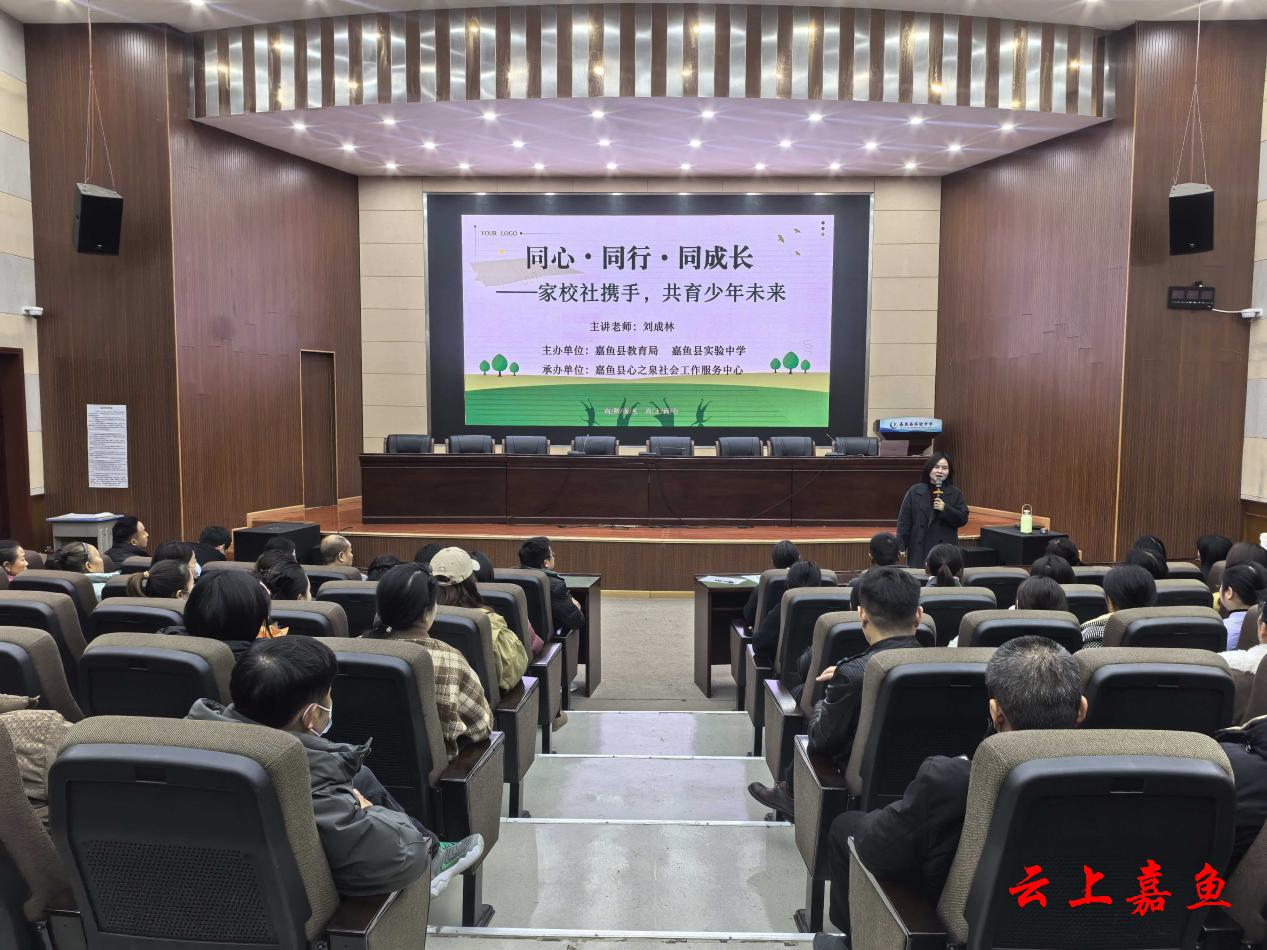 云上嘉鱼报道(通讯员周璇)1月16日,由嘉鱼县教育局、县实验中学主办,县心之泉社会工作服务中心承办的“同心·同行·同成长——家校社携手,共育少年未来”家长课堂在县实验中学举行。本次课堂聚焦“解码青春期·陪伴成长路”,旨在引导家长实现从“监工”到“人生教练”的转变,吸引了200余位七年级家长到场学习。