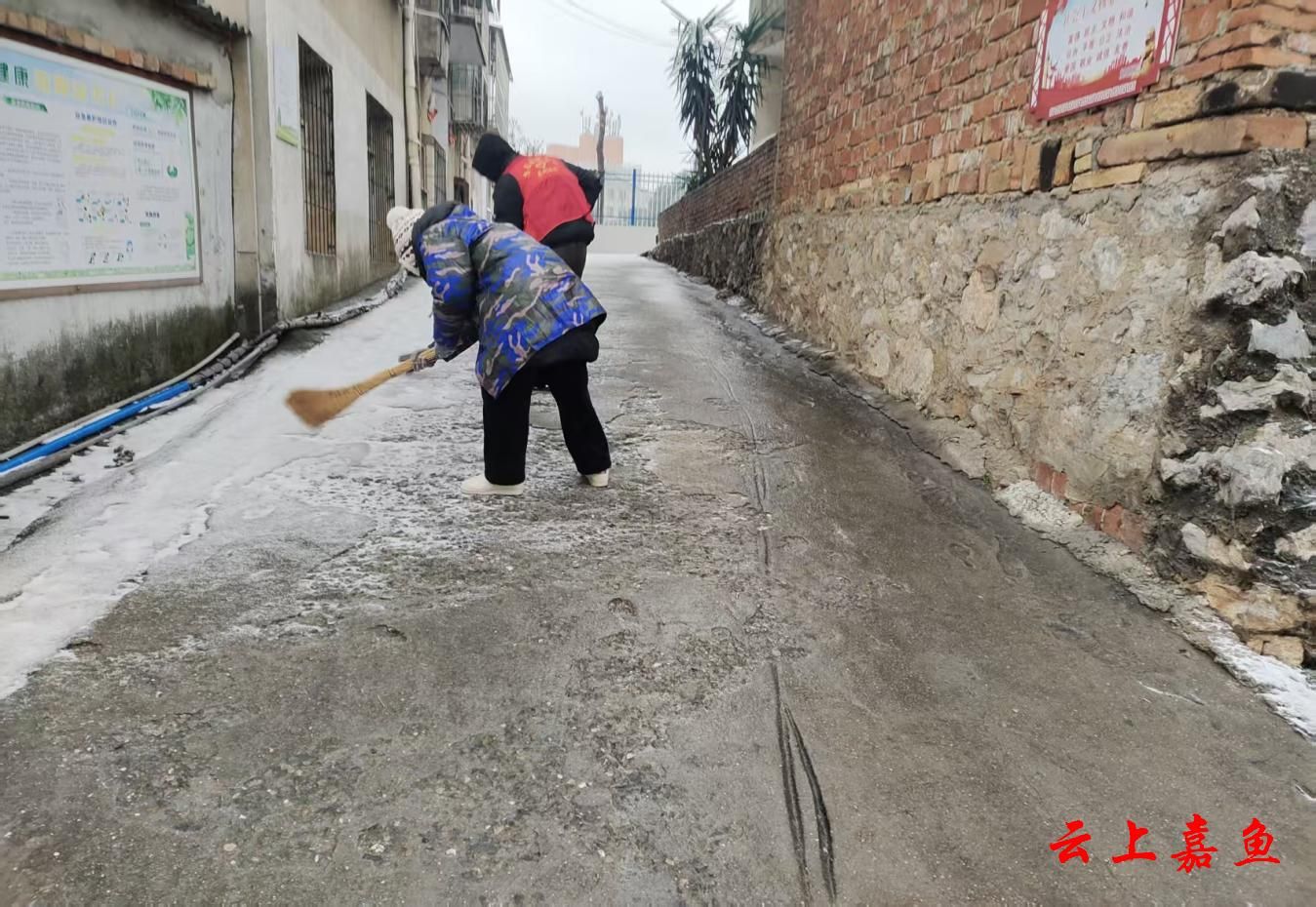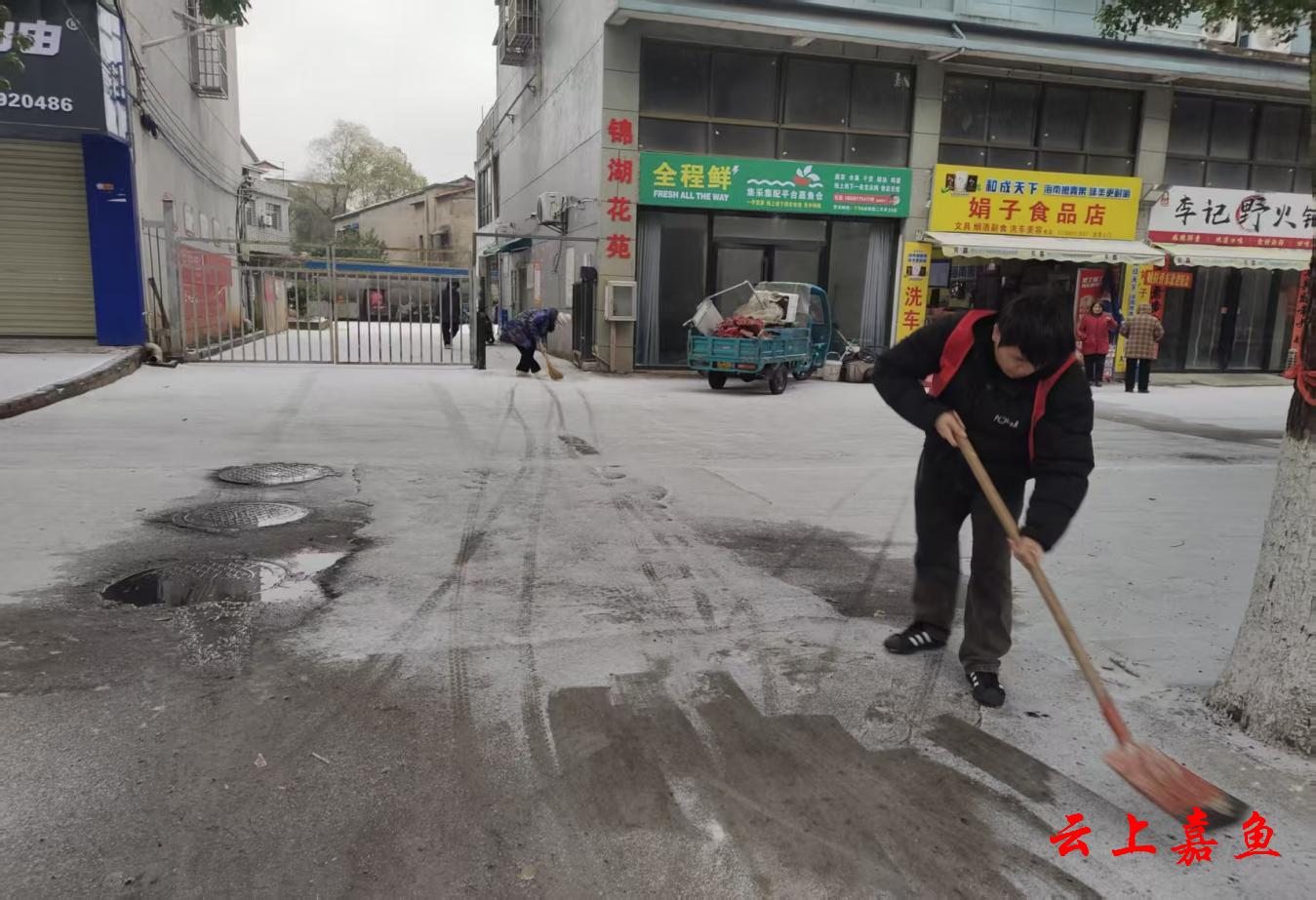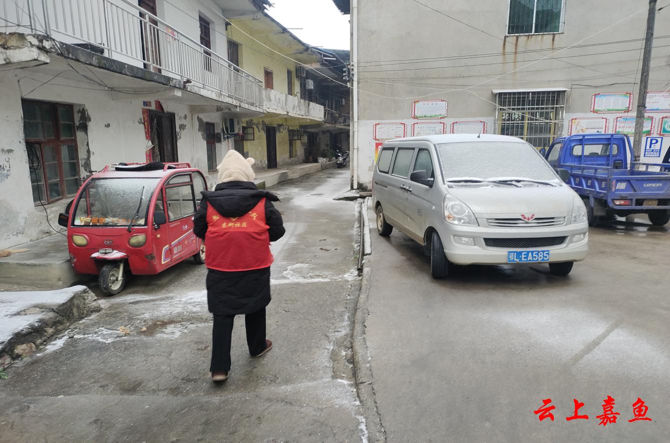 云上嘉鱼报道(全媒体记者邓丹 通讯员刘喜)1月20日,寒潮裹挟雨雪席卷而来,给居民日常生活与出行带来严峻考验。鱼岳镇东街社区迅速响应,秉持“雪情就是命令,民生就是责任”理念,第一时间组织社区工作者和党员志愿者走进网格、深入一线,在风雪中为居民筑起温暖的“红色防线”。