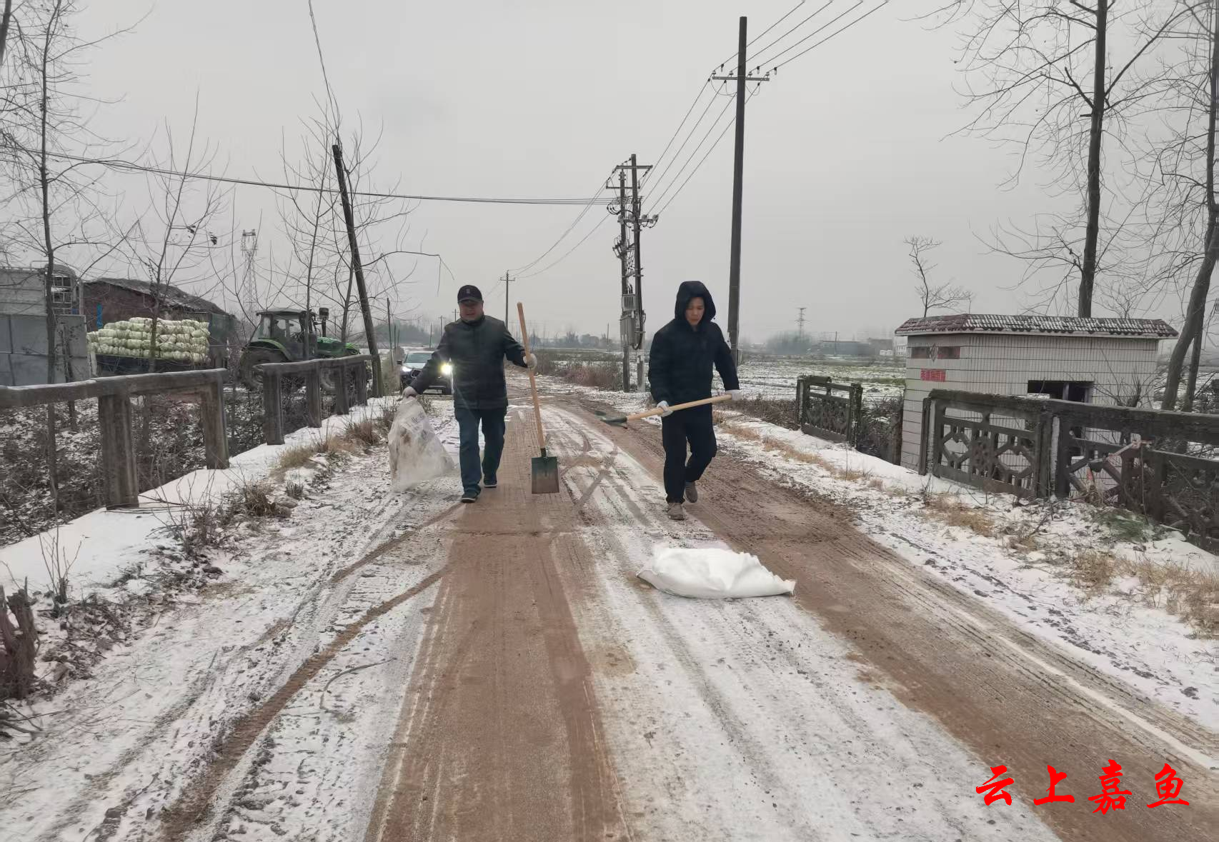 镇村干部、各村(社区)工作人员、相关部门及志愿者快速反应,组建多支应急除冰扫雪队伍,在辖区主干道、桥梁、江堤边及各村主要通行路口,利用铁锹、扫帚等工具,科学撒布融雪剂,全力清除路面积雪暗冰,确保道路畅通和出行安全。同时,自来水公司用保温布料对部分水管进行包裹,预防水管结冰,保障群众日常用水,并加强巡查频次,及时排查处置安全隐患。