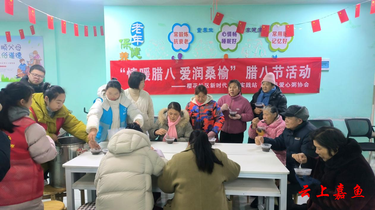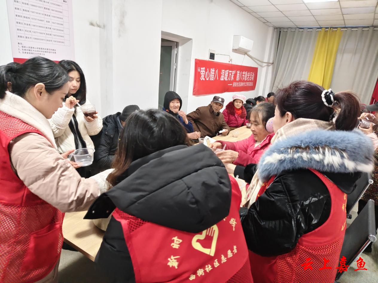 云上嘉鱼报道(通讯员陈泽春)1月26日是中国的传统节日腊八节,当天,鱼岳镇西街社区党委、妇联及新时代文明实践站联合在油榨湾党支部组织辖区居民开展“爱心腊八,温暖万家”主题敬老活动。