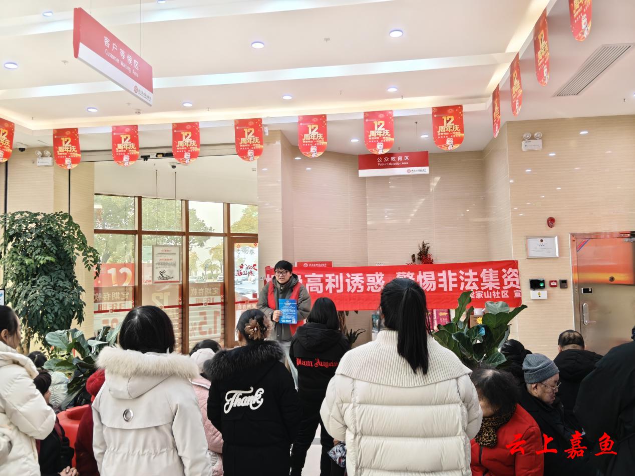 云上嘉鱼报道(通讯员杨丽黎)1月27日,鱼岳镇梁家山社区联合武汉农商行新天地支行,在该行网点举办“守护钱袋子·幸福好生活”反诈防非专题宣讲活动。