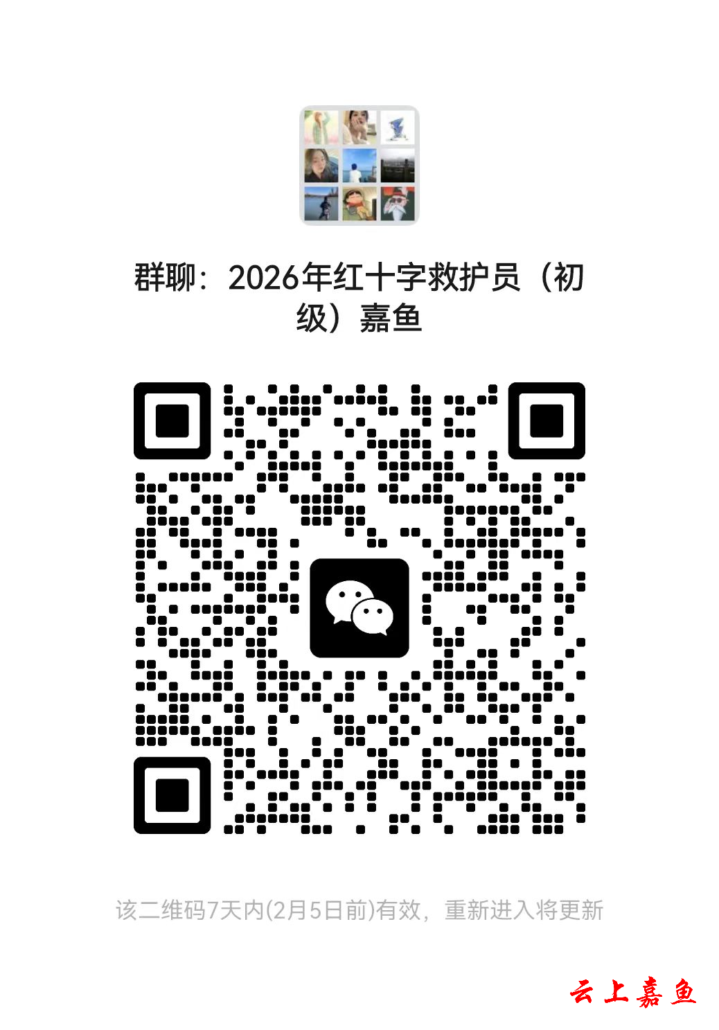 入群培训:扫描下方二维码加入红十字救护员(初级)培训班临时群,获取培训通知。