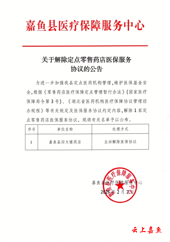 关于解除定点零售药店医保服务协议的公告