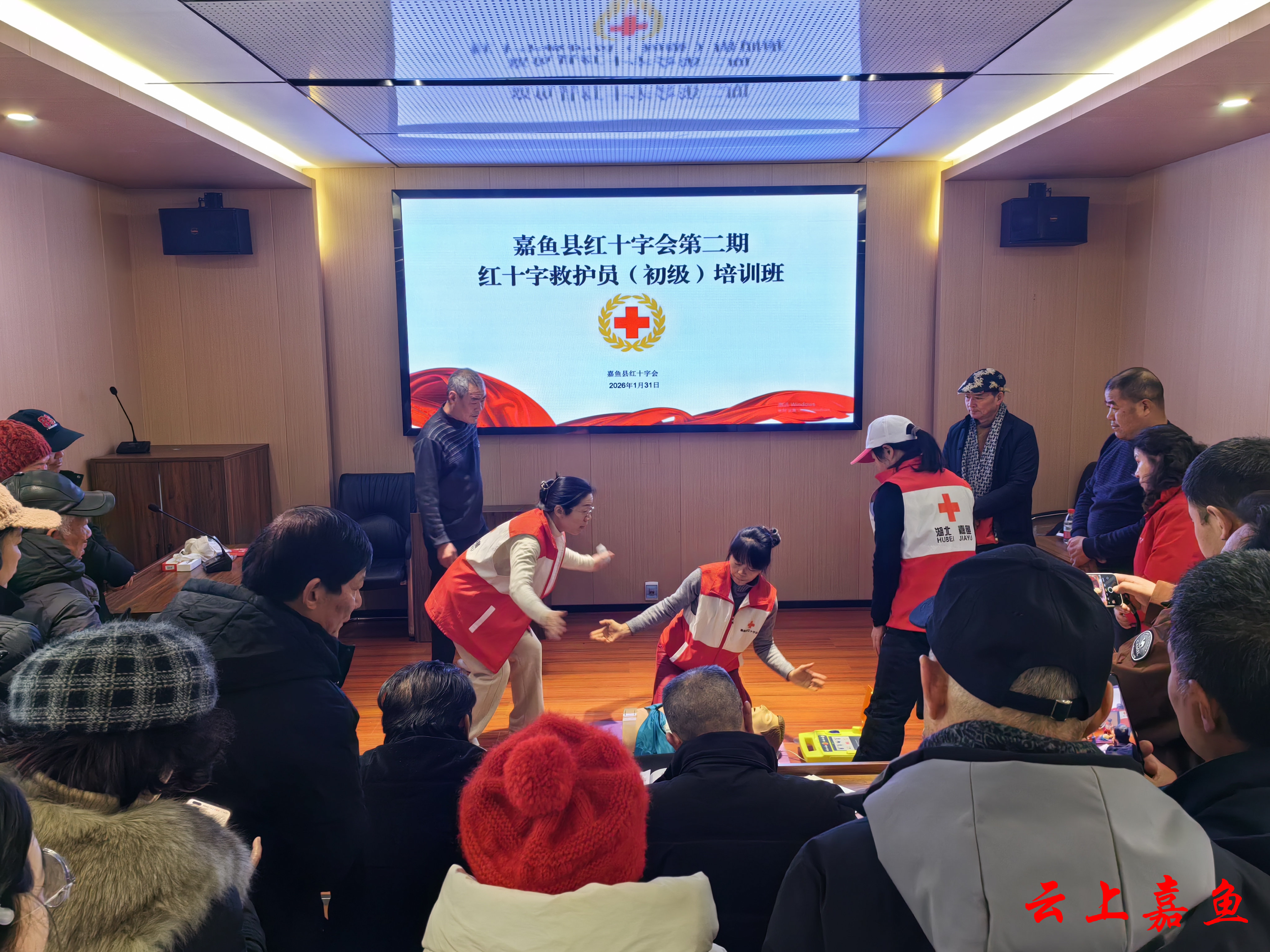 云上嘉鱼报道(全媒体记者汪妍 通讯员周颖)为强化水上应急救援力量建设,提升救护员专业施救能力,1月31日,嘉鱼县红十字会组织开展水上应急救援志愿服务队专项培训。近50名学员齐聚培训现场,系统学习急救知识与实操技能,为守护辖区江河湖泊水域安全注入专业力量。
