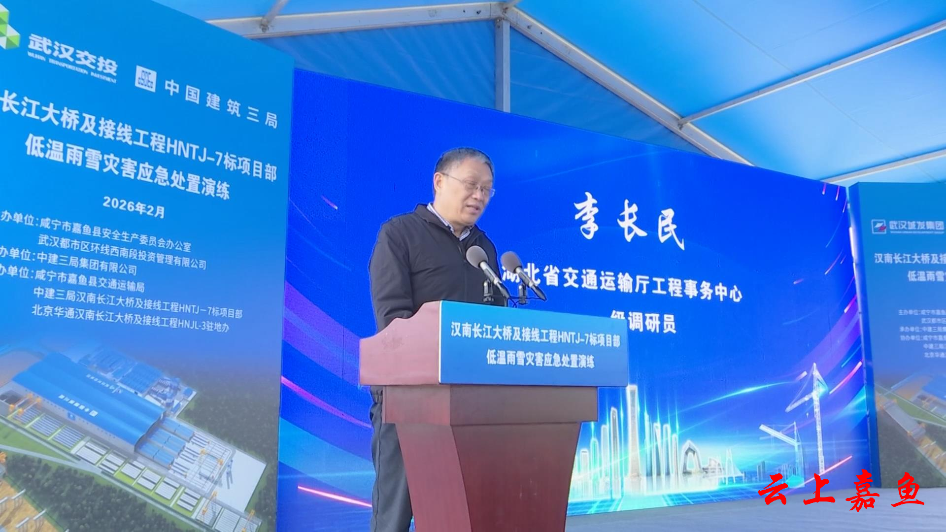 云上嘉鱼报道(全媒体记者邓伟强)为提升重大工程应对极端天气能力,保障项目建设与运营安全,2月4日,汉南长江大桥及接线工程项目开展2026年低温雨雪灾害应急处置演练。本次活动旨在通过实战化模拟,检验并完善项目在低温雨雪天气下的应急响应机制,最大限度预防和减少因灾害可能造成的损失。