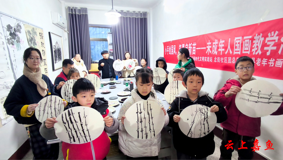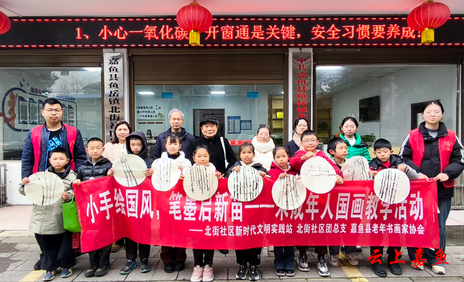 云上嘉鱼报道(全媒体记者祁声坤 通讯员熊荻)为传承中华优秀传统文化,丰富未成年人寒假生活,2月5日上午,鱼岳镇北街社区新时代文明实践站、社区团总支联合嘉鱼县老年书画家协会,共同举办“小手绘国风,笔墨启新苗”国画教学活动,邀请老年艺术家们为孩子们现场授课。