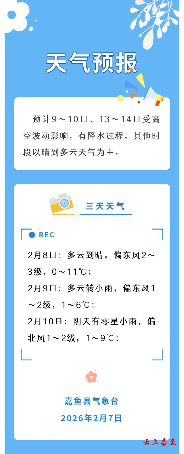 2026年2月7日嘉鱼天气预报