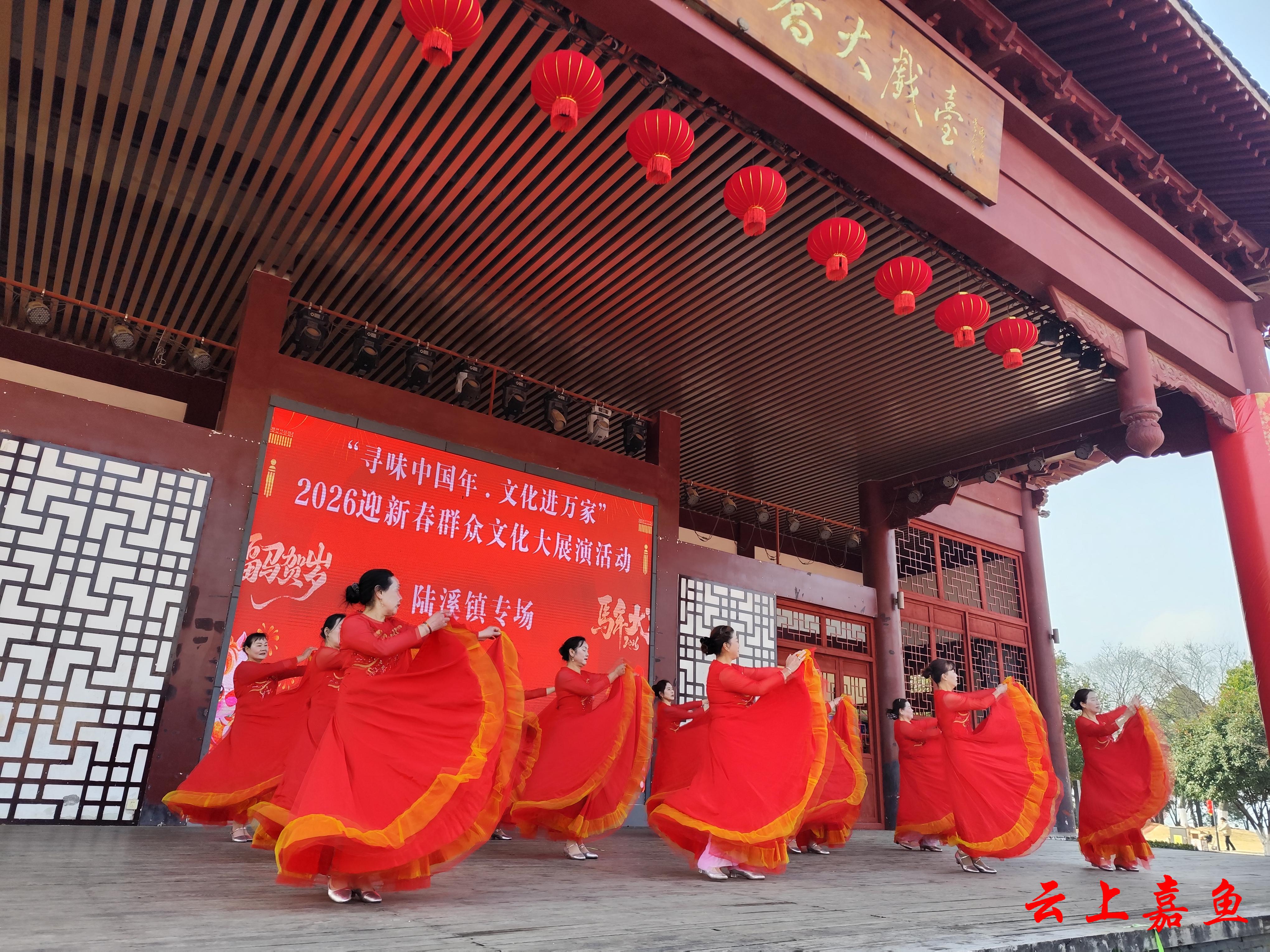 云上嘉鱼报道(全媒体记者邓丹)2月8日上午,“寻味中国年·文化进万家”2026迎新春群众文化大展演陆溪镇专场在二乔公园二乔大戏台精彩上演。