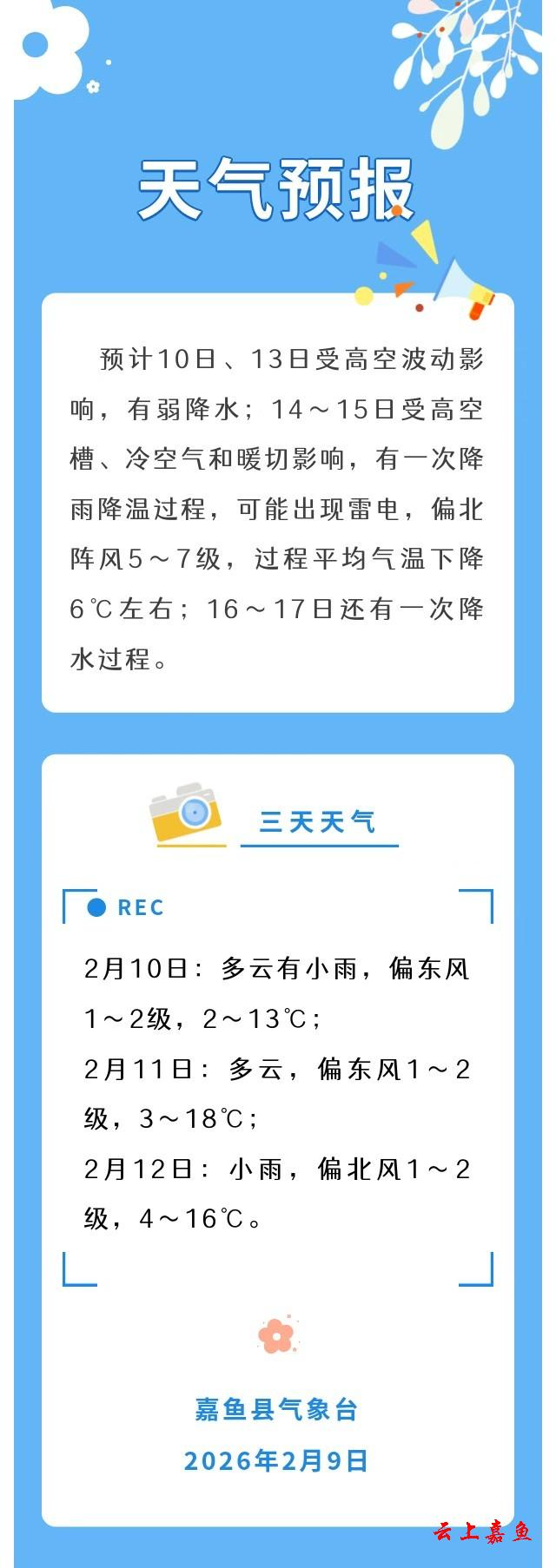 2026年2月9日嘉鱼天气预报