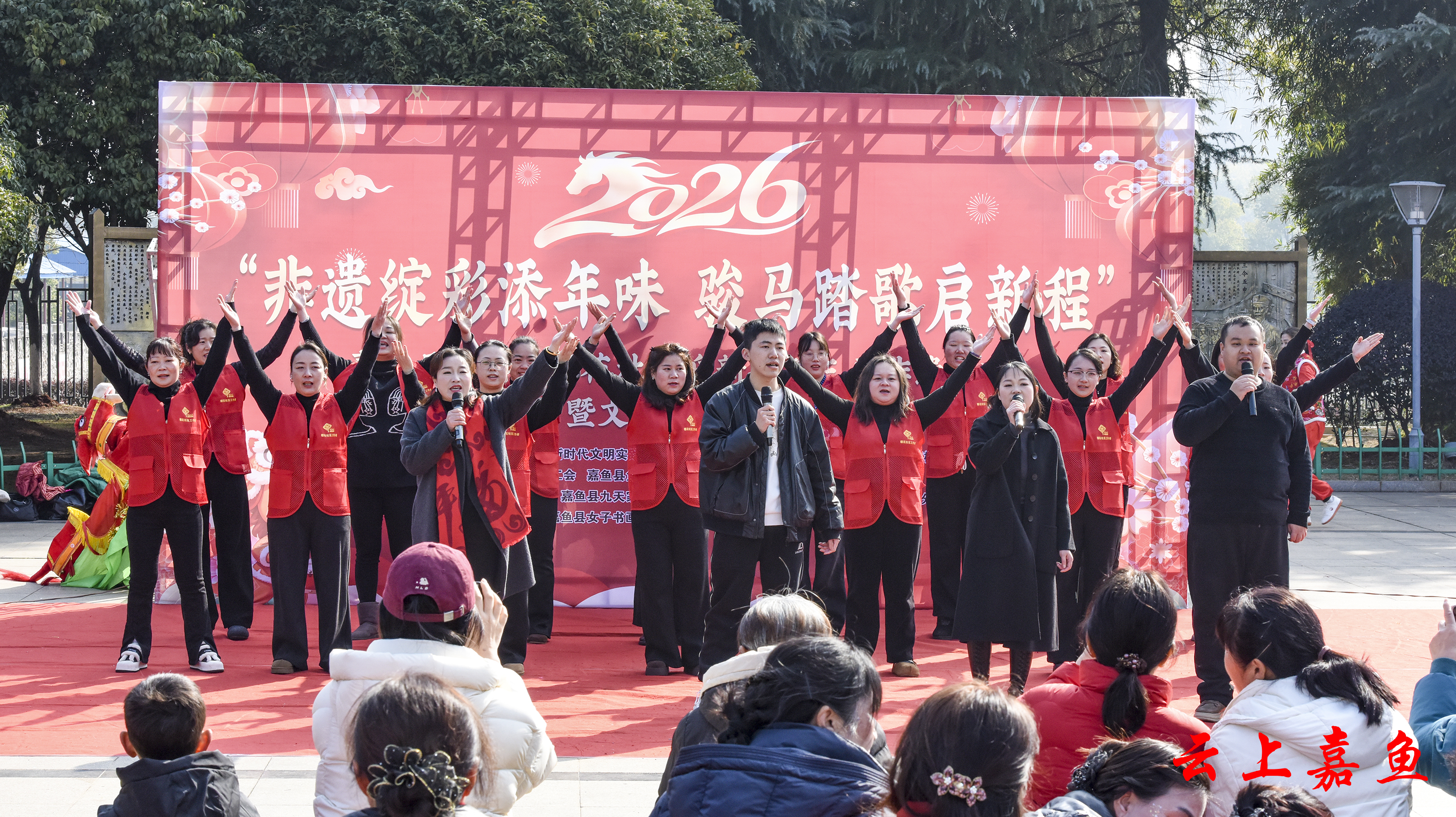 云上嘉鱼报道(全媒体记者雷平 通讯员朱倩)锣鼓喧天辞旧岁,非遗焕彩迎新春。2月8日,由鱼岳镇樱花社区新时代文明实践站、社区党总支、嘉鱼县女子书画家协会等共同举办的第三届非遗集市暨文艺汇演在人民公园热闹上演,为辖区居民献上了一场集非遗文化体验、惠民便民服务与视听艺术盛宴于一体的新年盛会。
