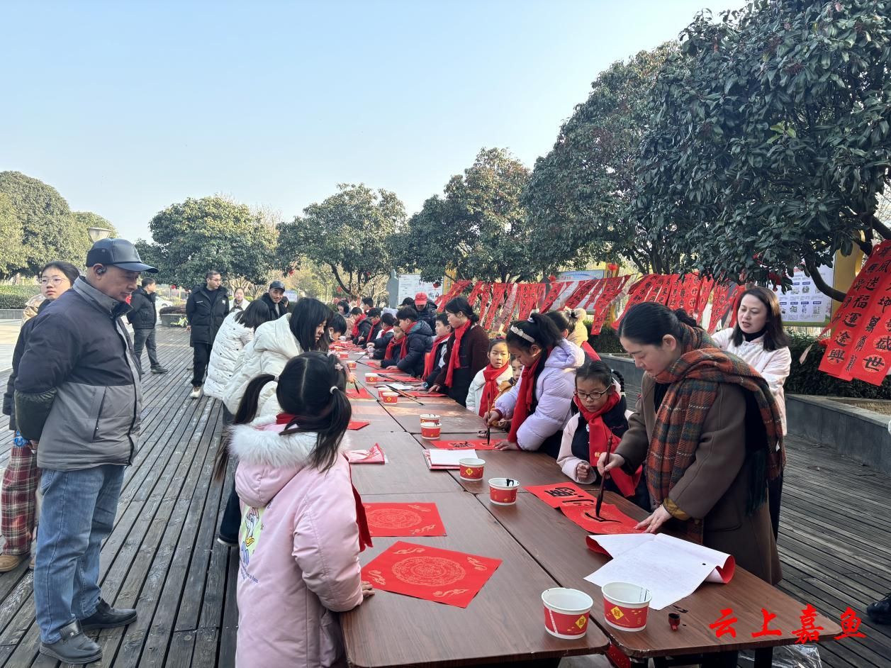 云上嘉鱼报道(全媒体记者邓丹 通讯员朱倩)春风送暖,年味渐浓。2月8日,鱼岳镇樱花社区新时代文明实践站、社区团委、社区工会、社区侨联等部门联合嘉鱼县女子书画协会在人民公园举办“翰墨飘香迎新春 非遗添彩庆佳节”写春联送祝福活动,以笔墨传祝福,以非遗话年俗,为辖区居民送上了一场丰盛的文化盛宴。